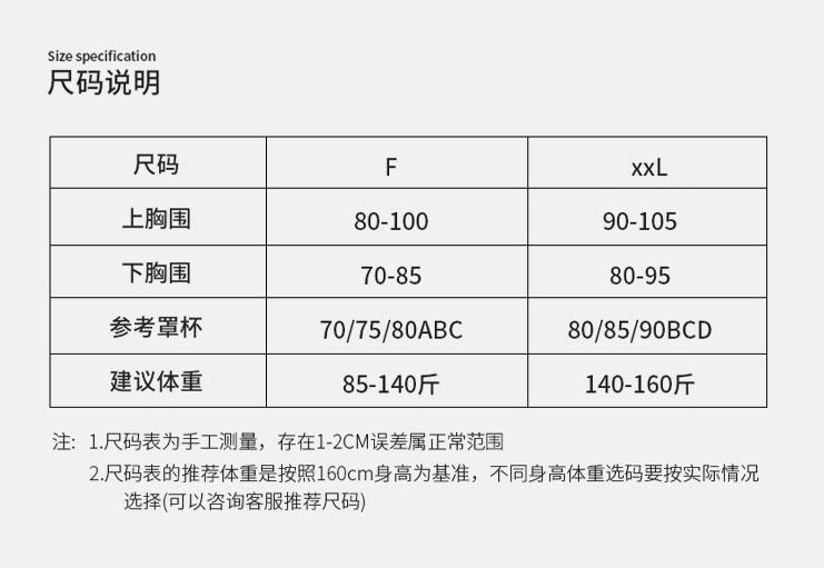 【尺码】:常规版F码(A-C杯/90-130斤)