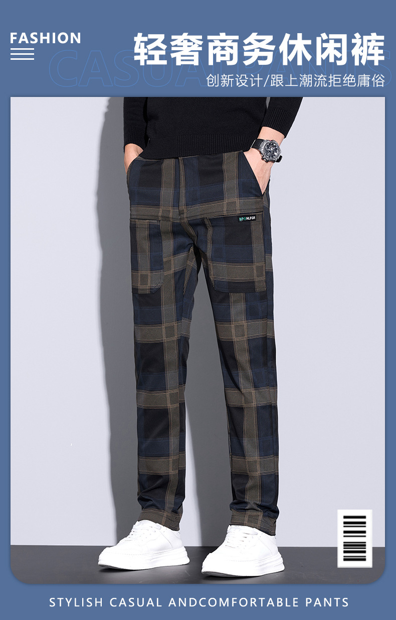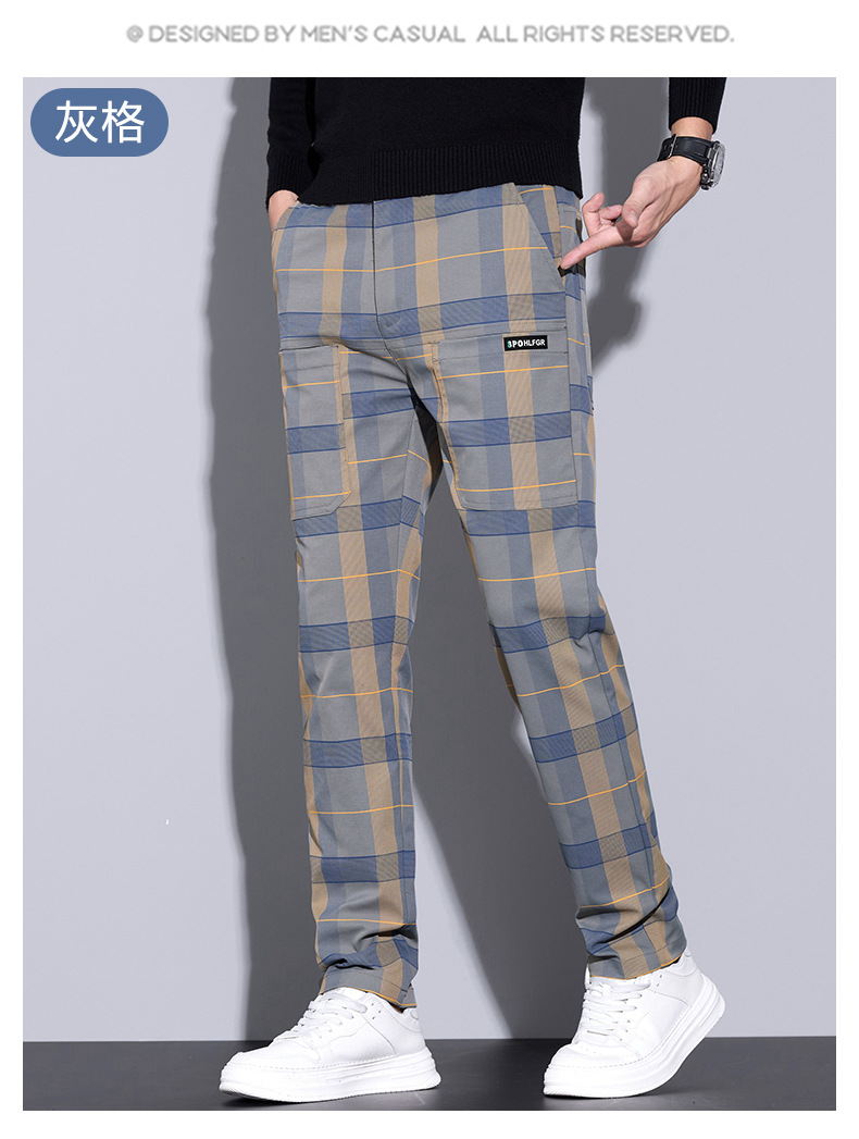 2026 봄 신상 남성 체크무늬 캐주얼 팬츠, 편안하고 다용도로 활용 가능한 신축성 있는 6포켓 스트레이트 팬츠, 남성용 대형 사이즈 바지스토어 가기