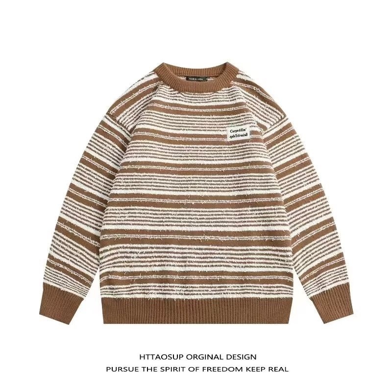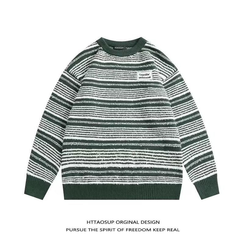 국가 조수 거리 줄무늬 트위스트 스웨터 여성의 가을 느슨한 bf 게으른 바람 트렌드 애호가 스웨터스토어 가기