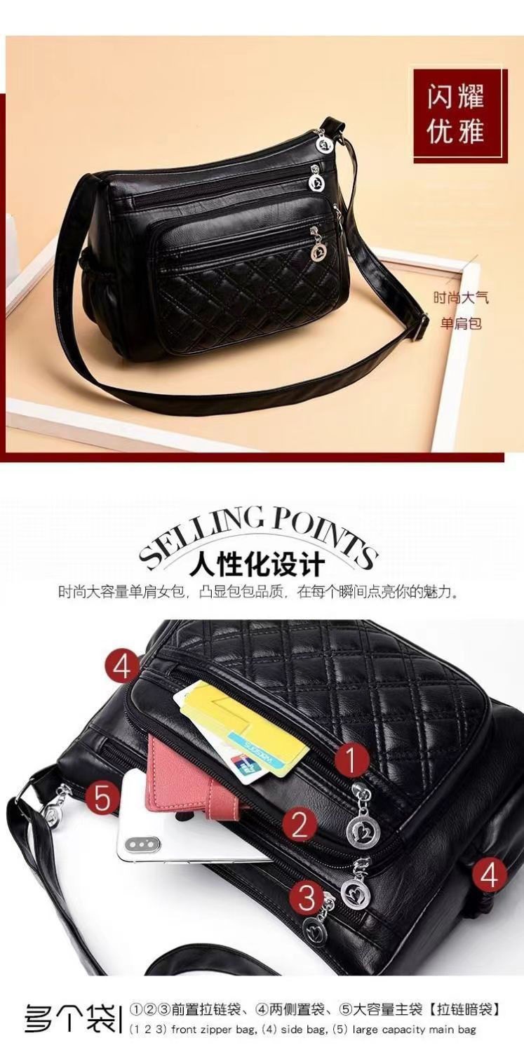 2024 새로운 스타일 다재다능하고 분위기 있는 중년 여성 가방 엄마 가방 다층 부드러운 가죽 어깨 크로스 바디 백 시어머니 가방 크로스 바디 백스토어 가기