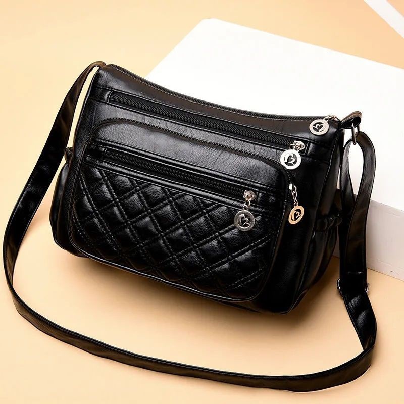 2024 새로운 스타일 다재다능하고 분위기 있는 중년 여성 가방 엄마 가방 다층 부드러운 가죽 어깨 크로스 바디 백 시어머니 가방 크로스 바디 백
