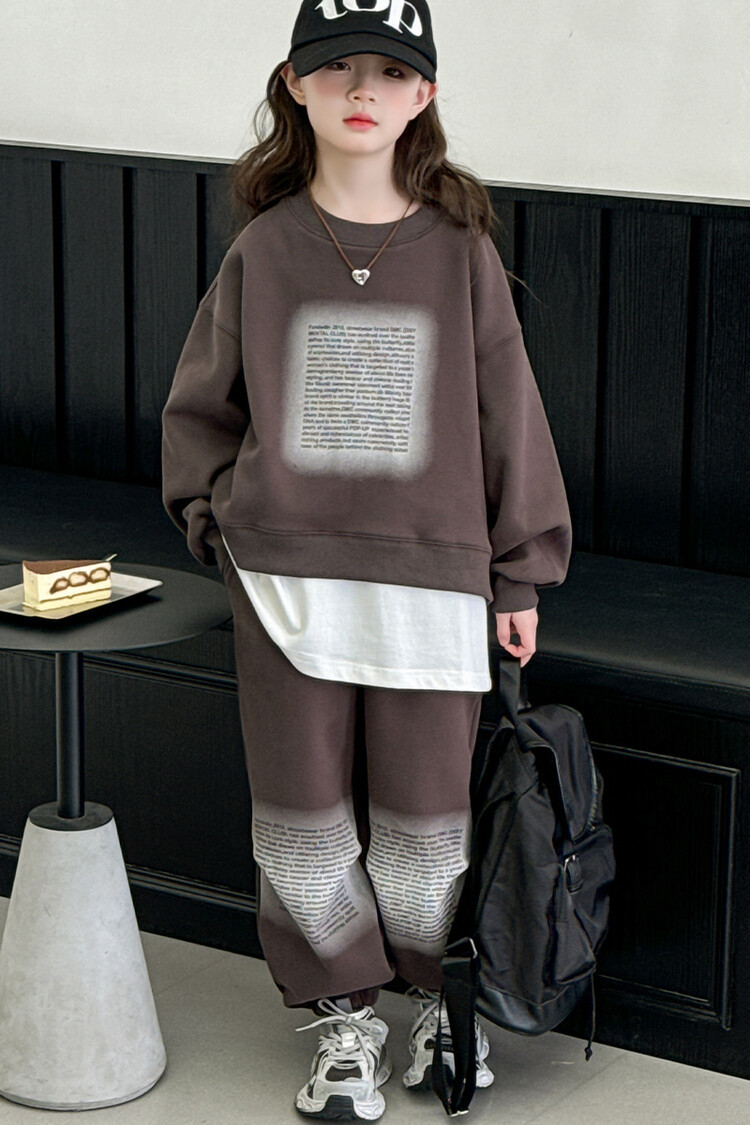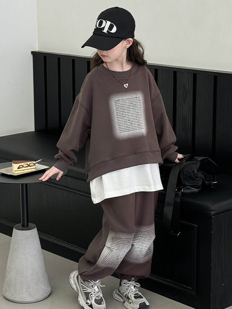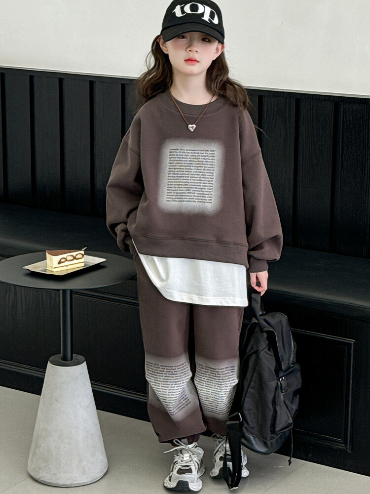 대외 무역 소녀 가을 세트 유행 바느질 가짜 투피스 운동복 한국 유행 퀴어 아동복