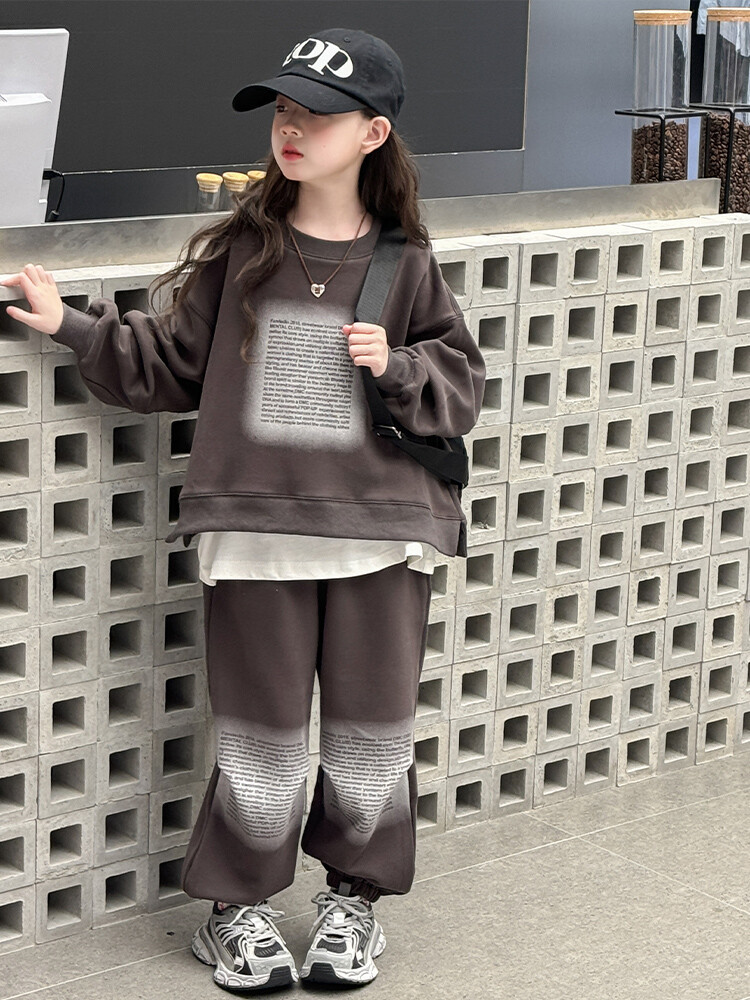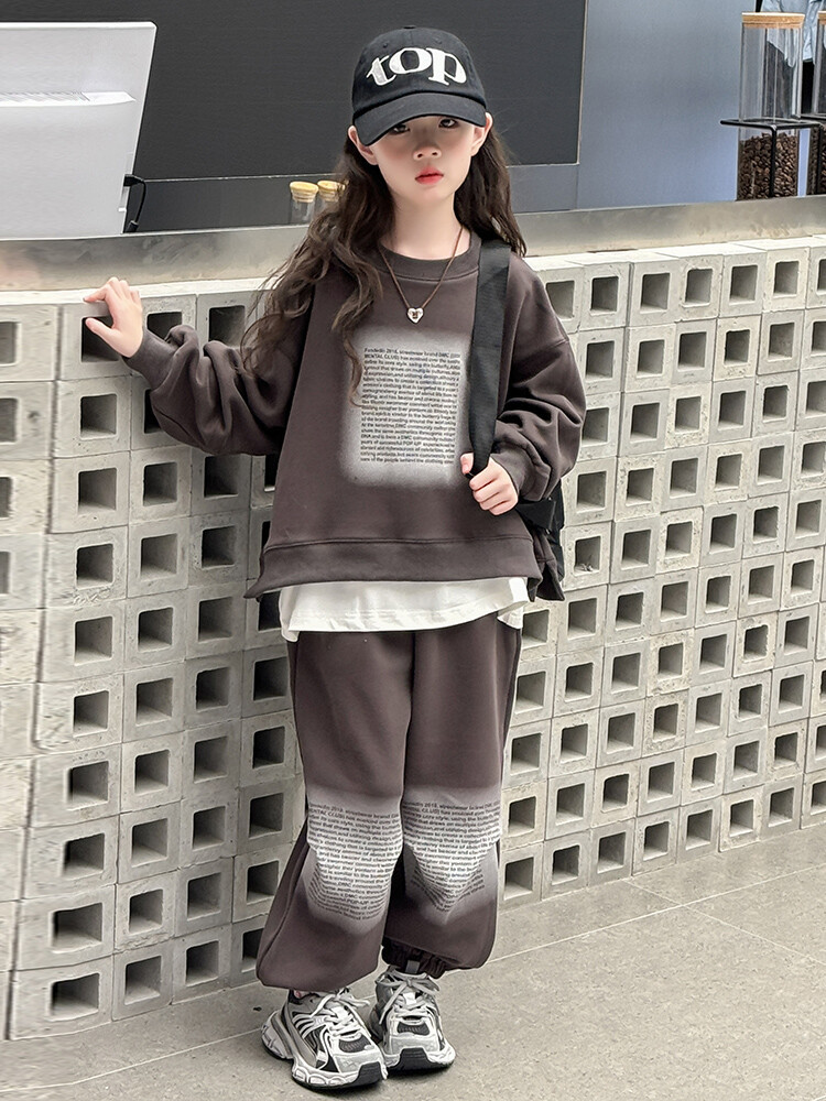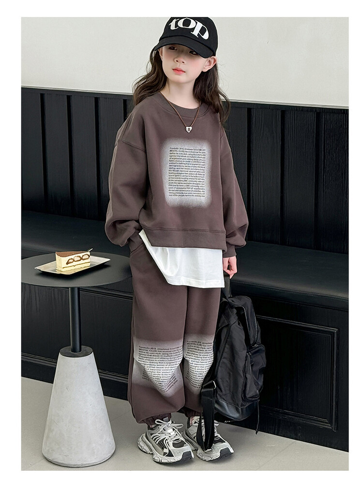 대외 무역 소녀 가을 세트 유행 바느질 가짜 투피스 운동복 한국 유행 퀴어 아동복스토어 가기