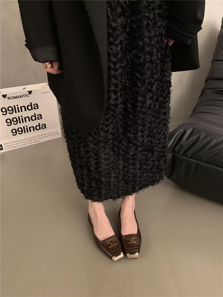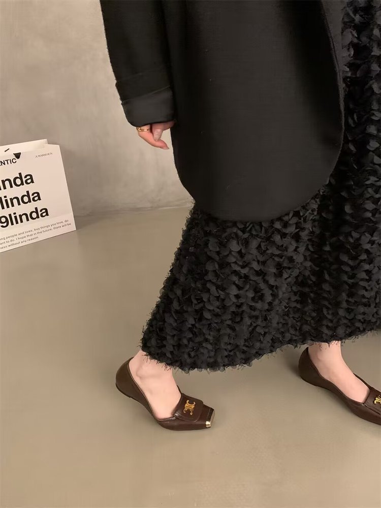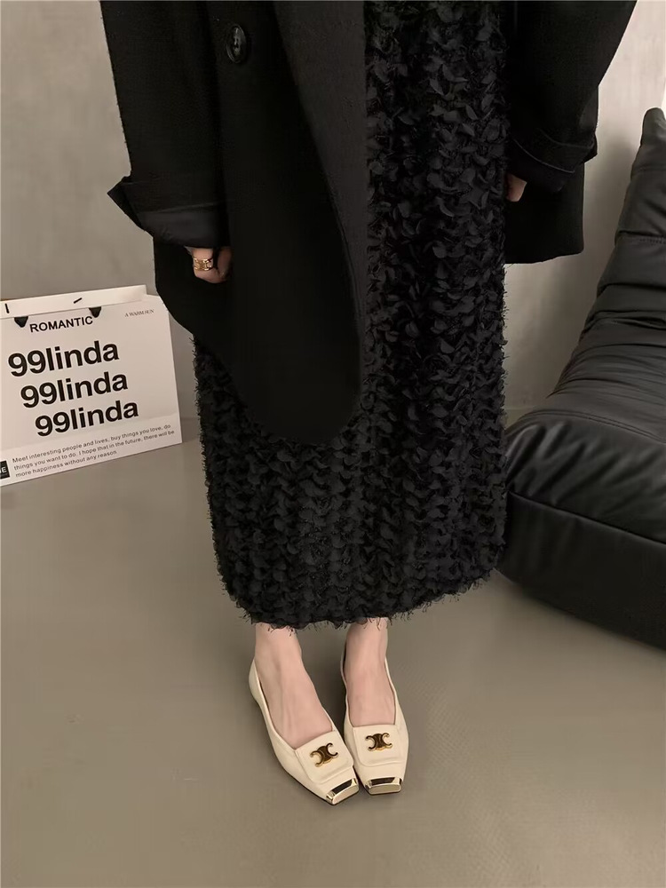 한국 스타일 디자인 센스 얕은 입 싱글 레이어 신발 작은 가죽 신발 검은 우아한 플랫 신발 가을과 겨울 프랑스 펌프 소프트 솔 여성 신발