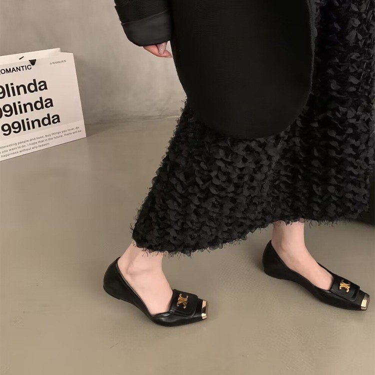한국 스타일 디자인 센스 얕은 입 싱글 레이어 신발 작은 가죽 신발 검은 우아한 플랫 신발 가을과 겨울 프랑스 펌프 소프트 솔 여성 신발스토어 가기
