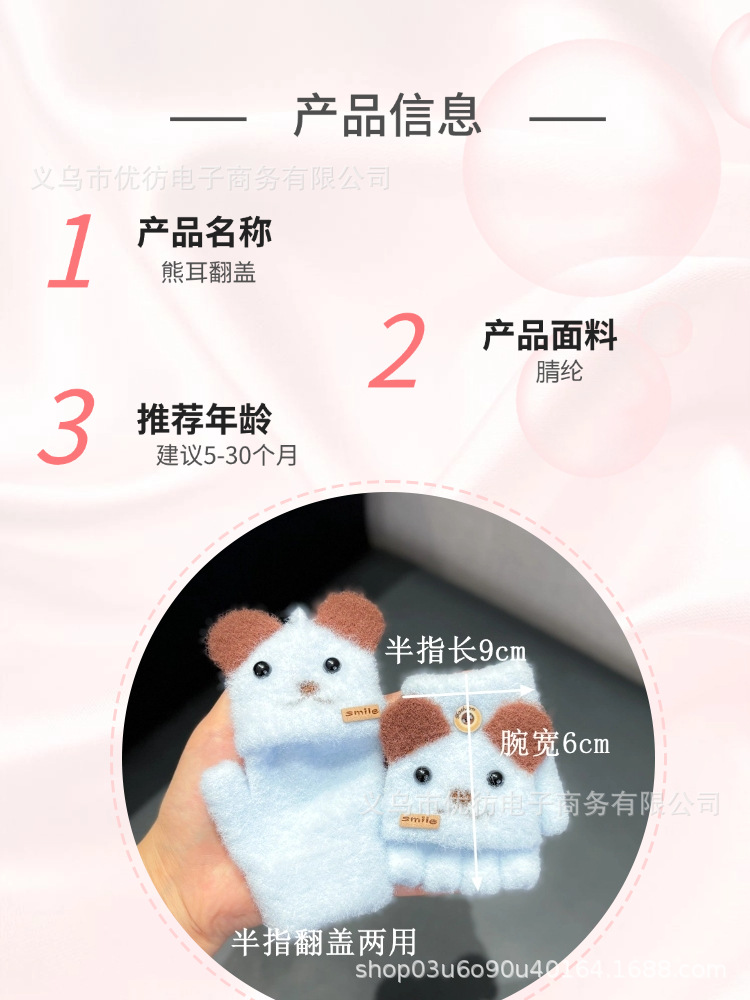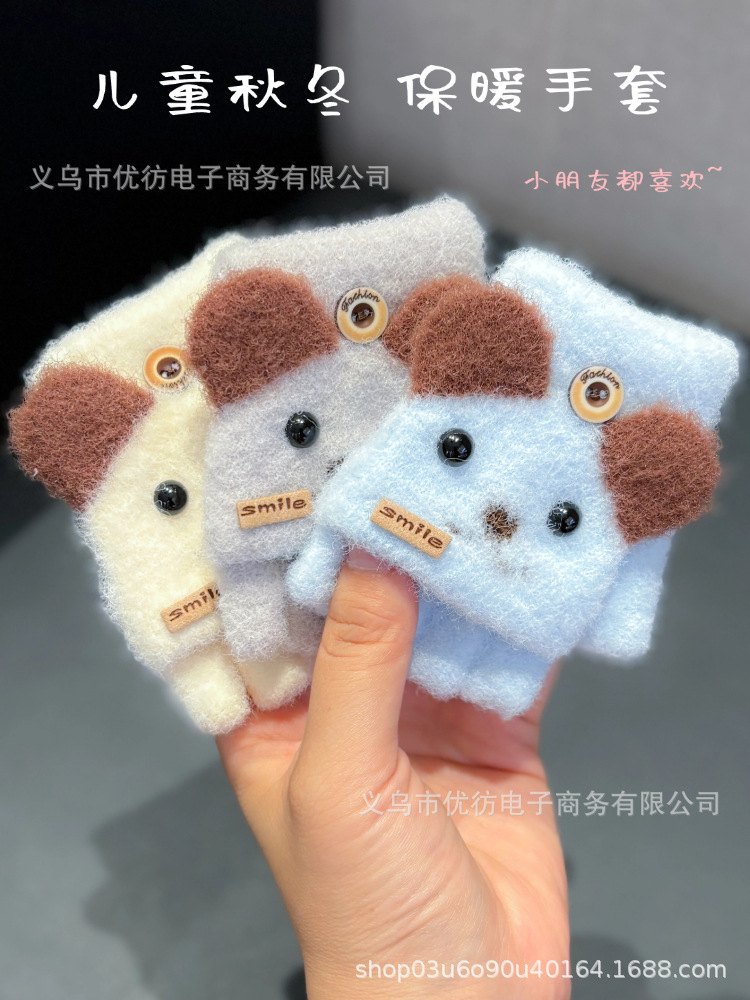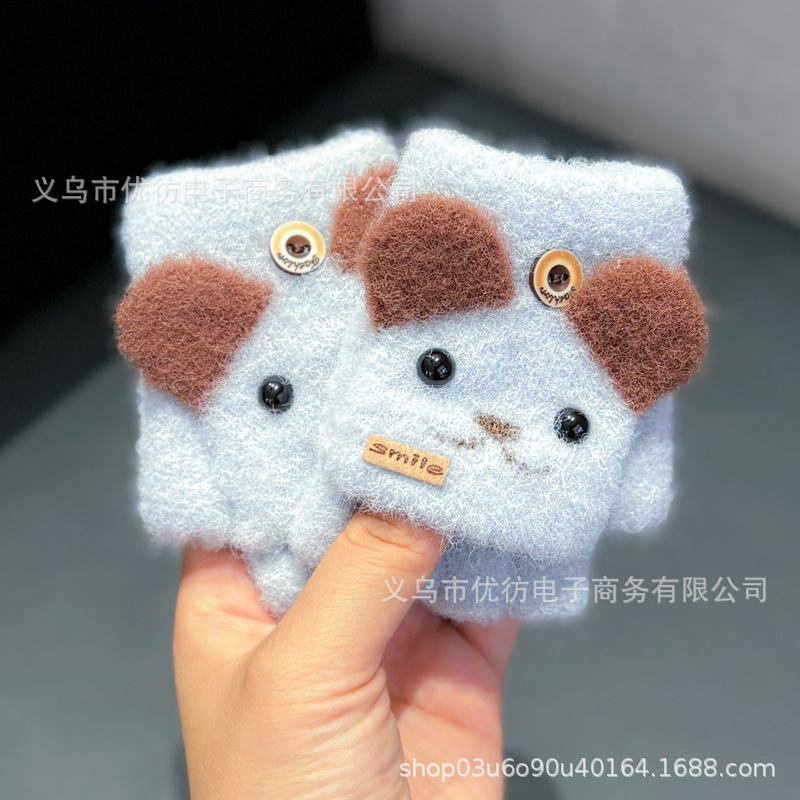 아기의 장갑 가을과 겨울 아기 귀여운 부드러운 따뜻한 손가락 엑스트라-손가락 감기 방풍 반 손가락 플립 커버 소년 소녀스토어 가기