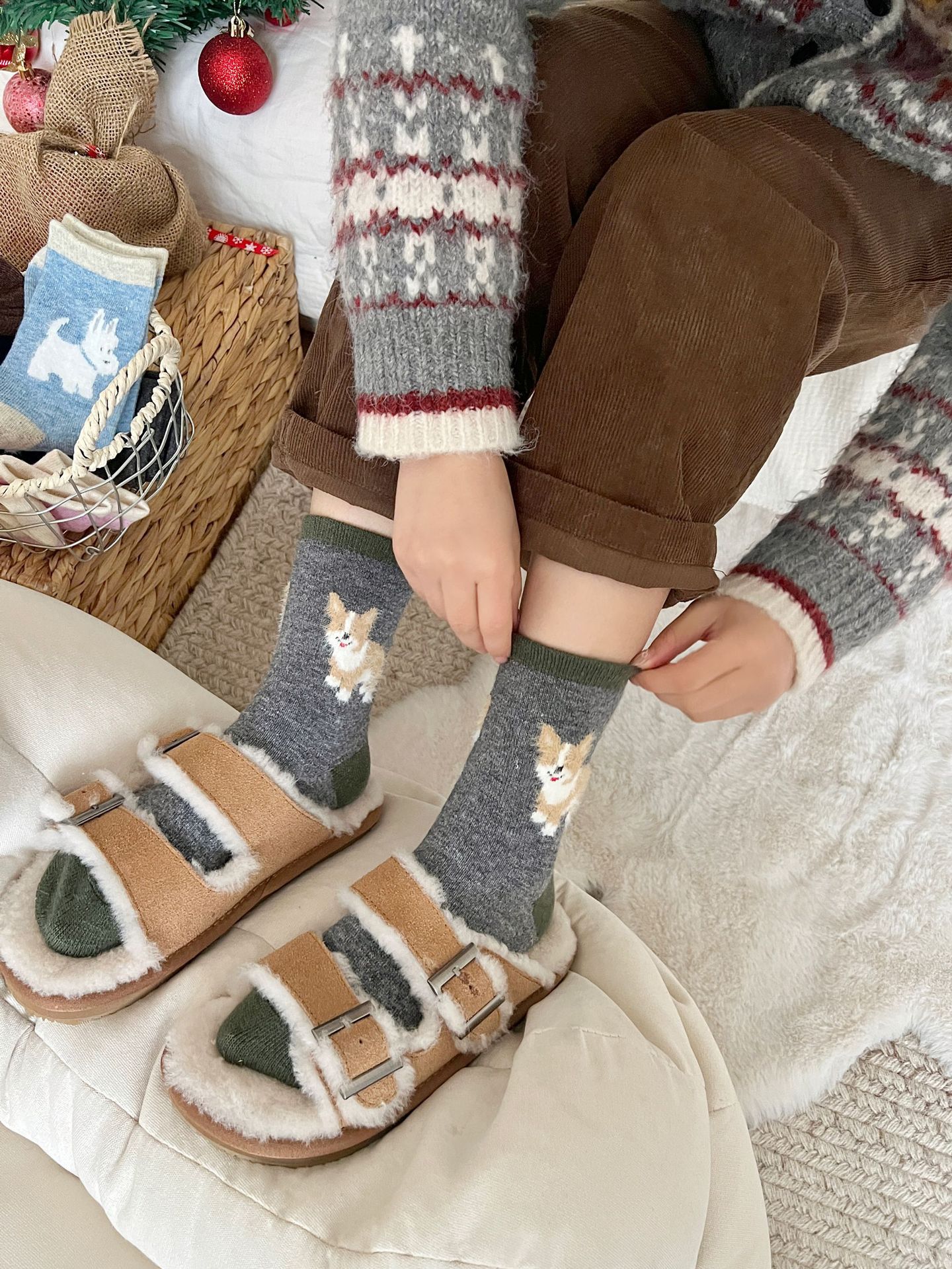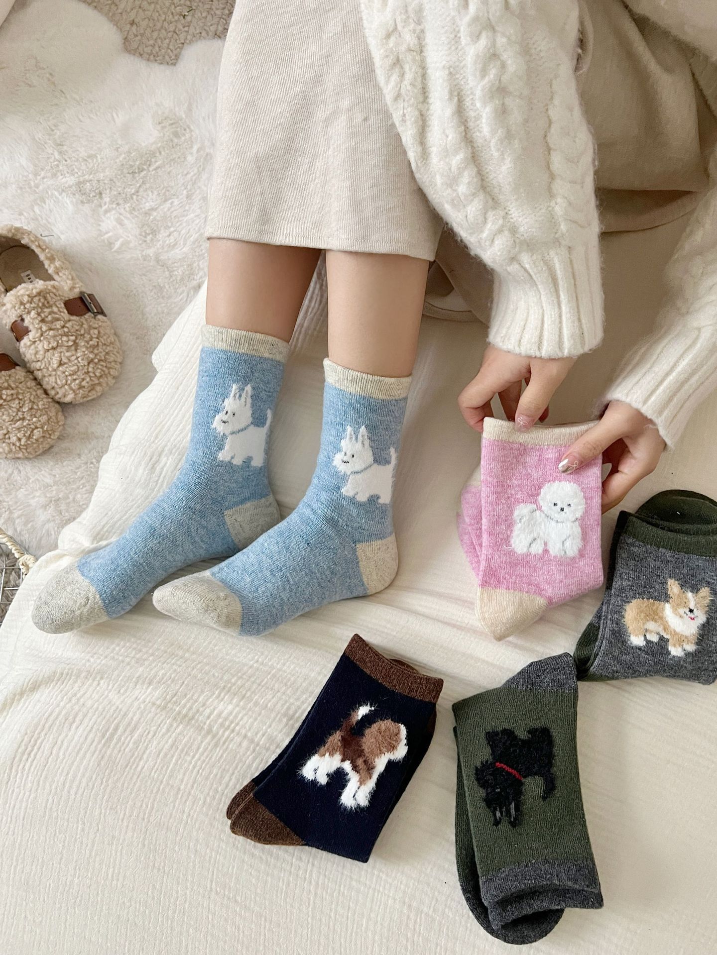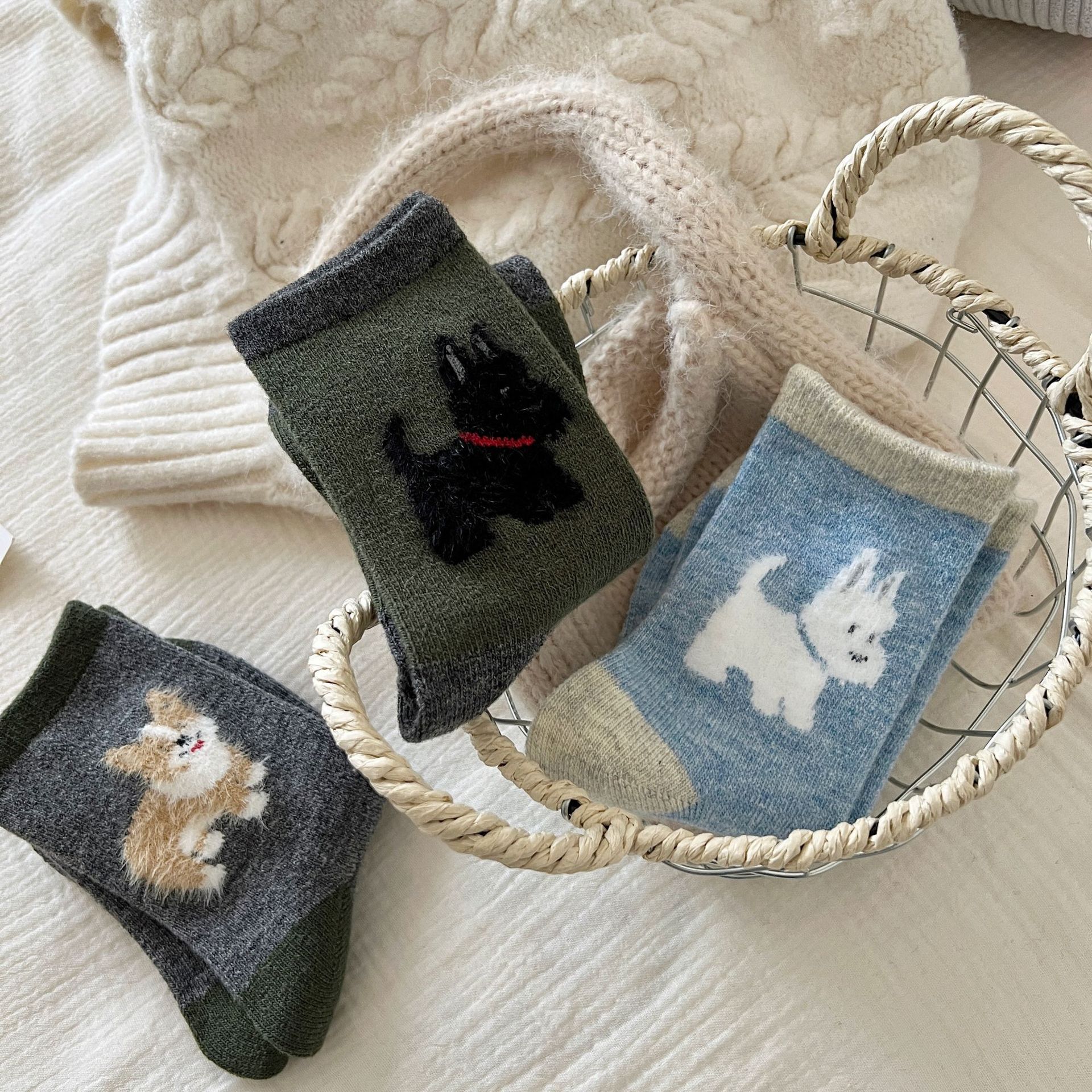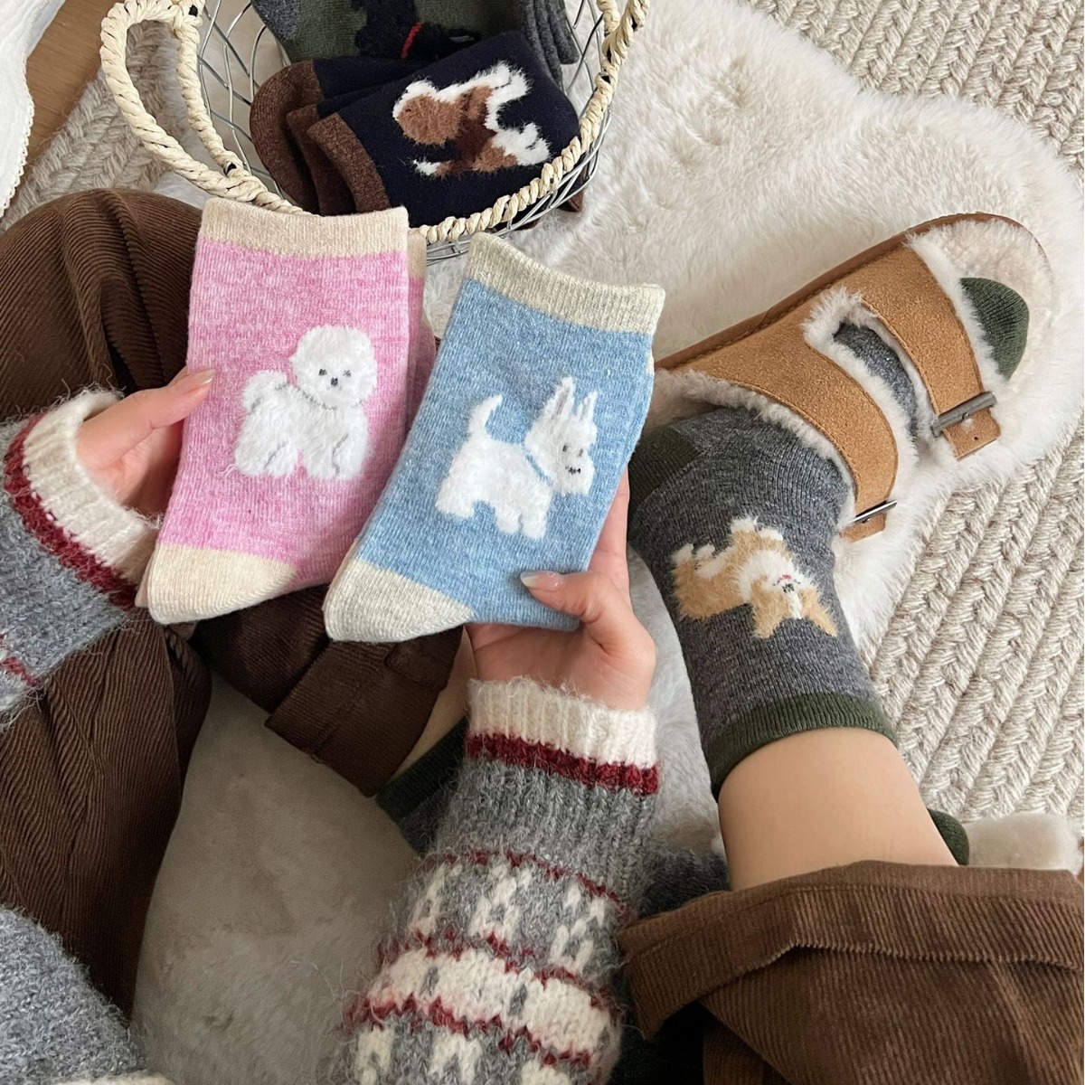 일본 강아지 양 양모 양말 여성의 가을과 겨울 따뜻한 두꺼운 더미 양말 귀여운 신선한 간단한 색상 매칭 미드 튜브 양말