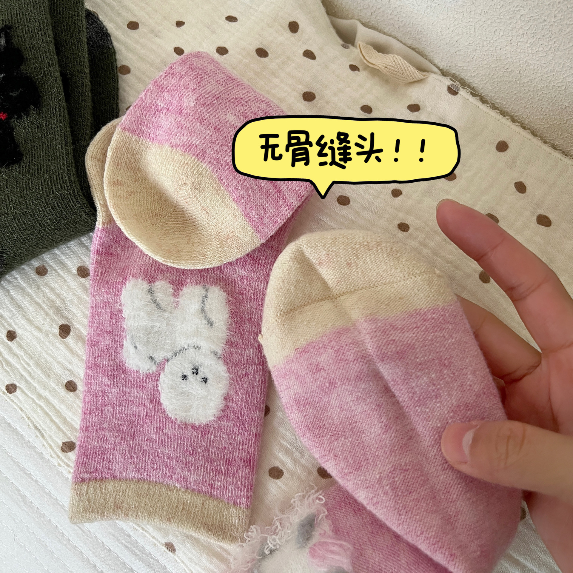 일본 강아지 양 양모 양말 여성의 가을과 겨울 따뜻한 두꺼운 더미 양말 귀여운 신선한 간단한 색상 매칭 미드 튜브 양말스토어 가기