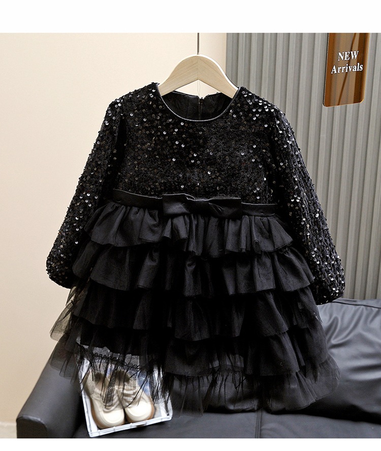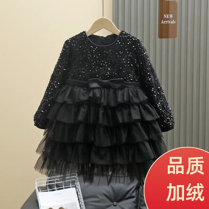 여자 드레스 봄과 가을 2025 새로운 스타일의 어린 소녀 검은 공주 드레스 어린이 푹신한 드레스 스커트스토어 가기
