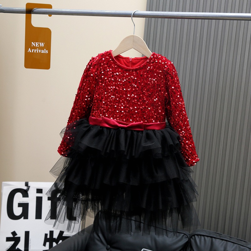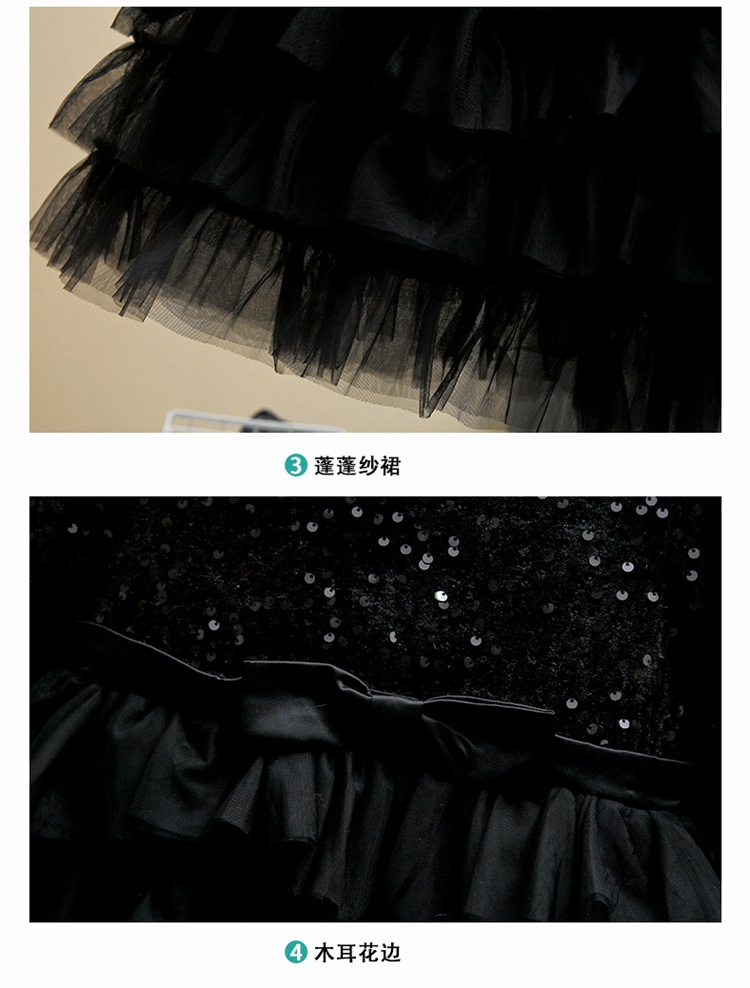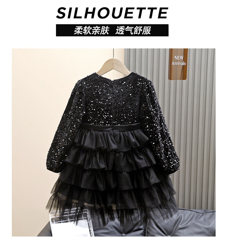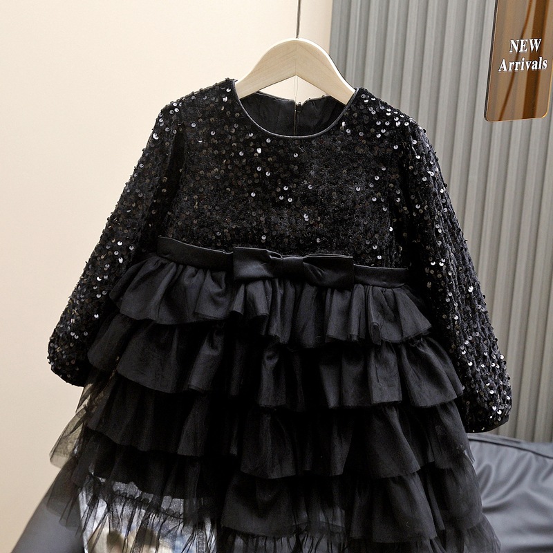 여자 드레스 봄과 가을 2025 새로운 스타일의 어린 소녀 검은 공주 드레스 어린이 푹신한 드레스 스커트