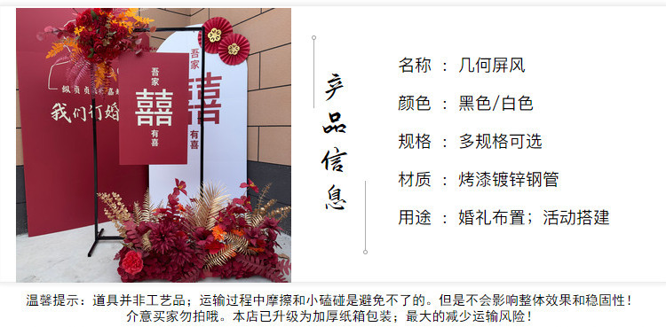 婚庆铁艺架子屏风长方框婚礼订婚舞台黑色背景架几何拱门迎宾支架