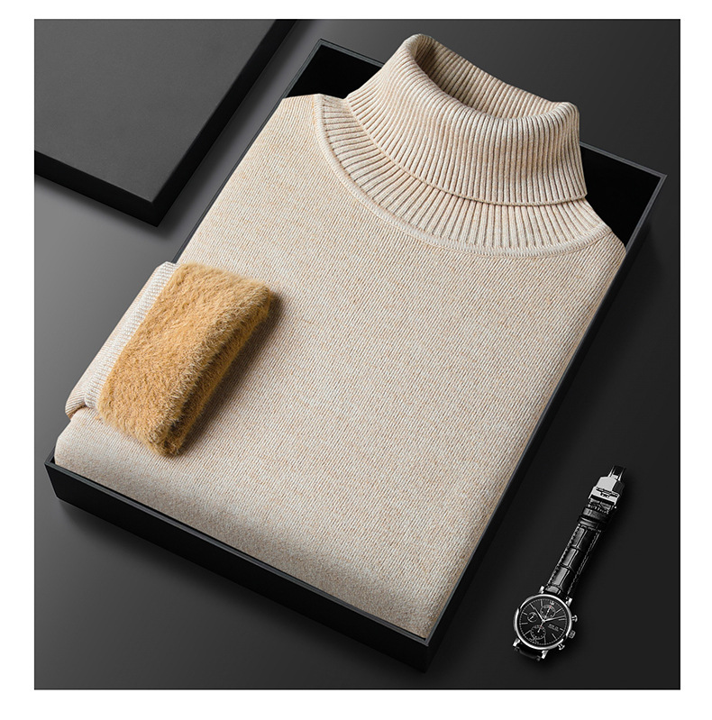 Puyuan Winter High Collar 니트 원피스 벨벳 두꺼운 하이 엔드베이스 스웨터 남성용 세련된 따뜻한 스웨터