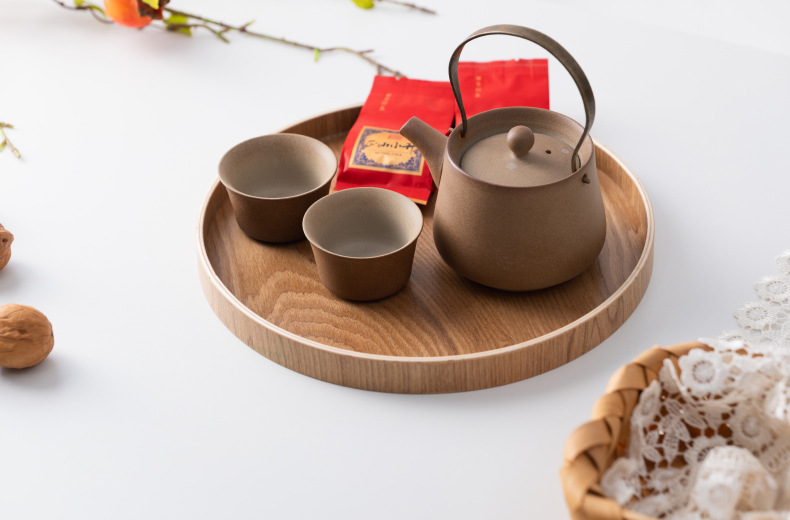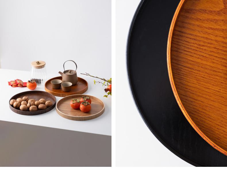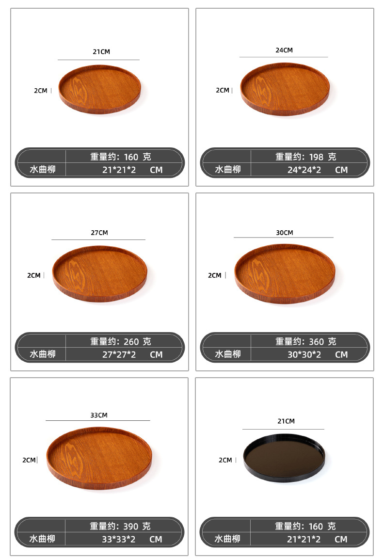 일본 스타일 빈티지 나무 티 플레이트 디너 플레이트 라운드 트레이 멀티 컬러 가정용 과일 플레이트 식기 도매