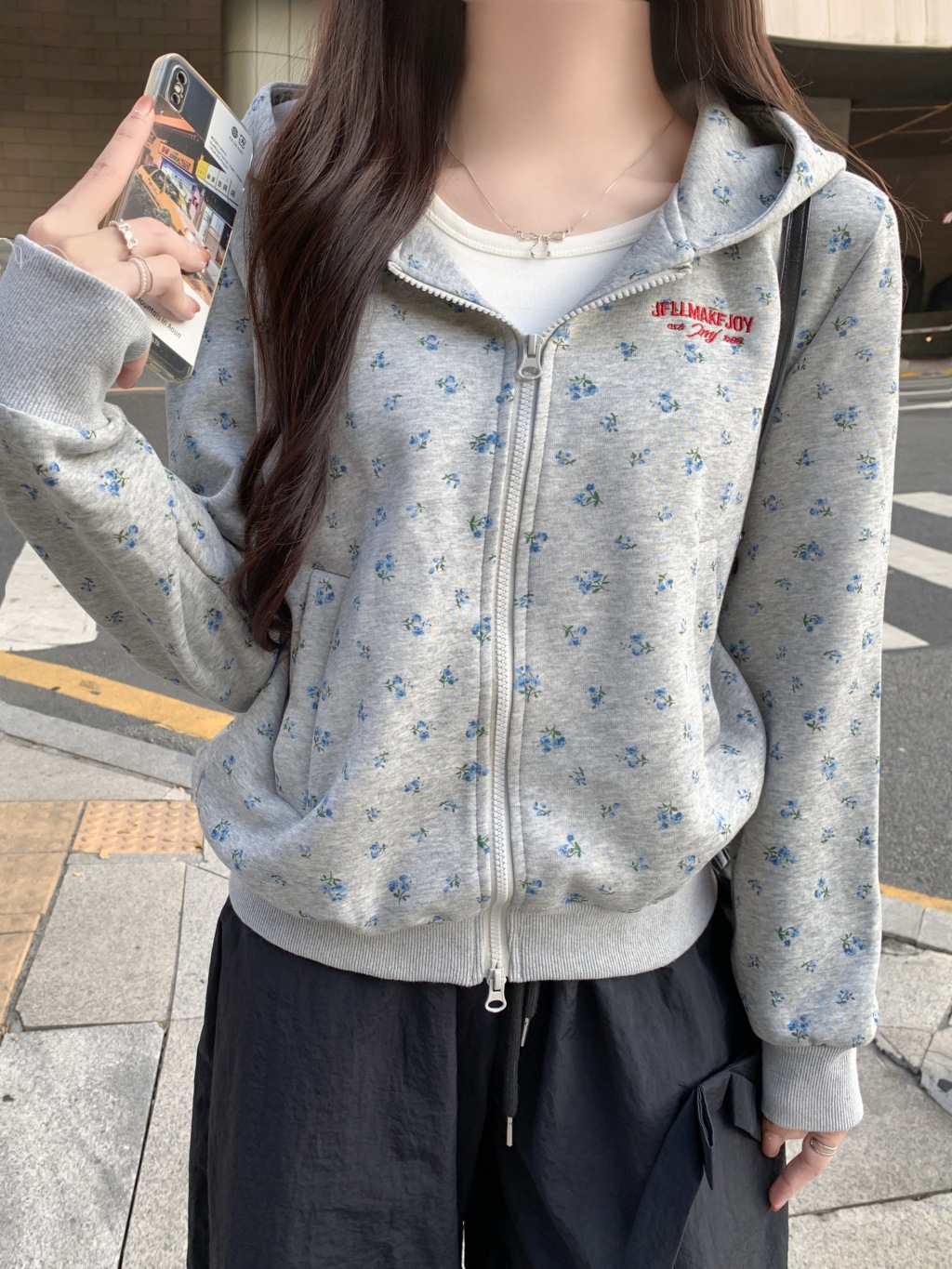 지퍼 후드 스웨터 여성의 느슨한 봄과 가을 2024 새로운 겨울 기모 캐주얼 카디건 자수 레터 자켓스토어 가기