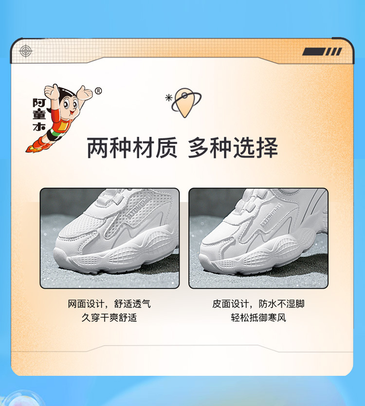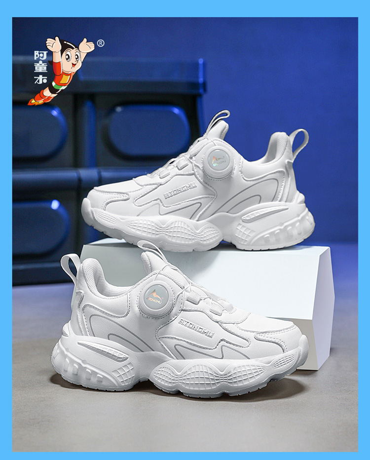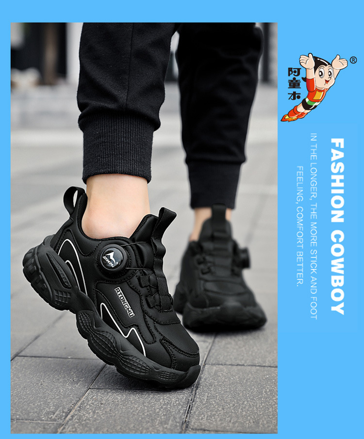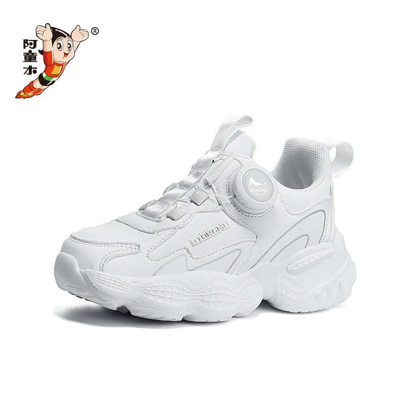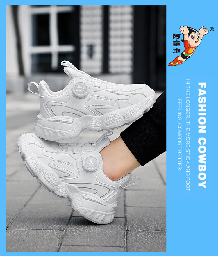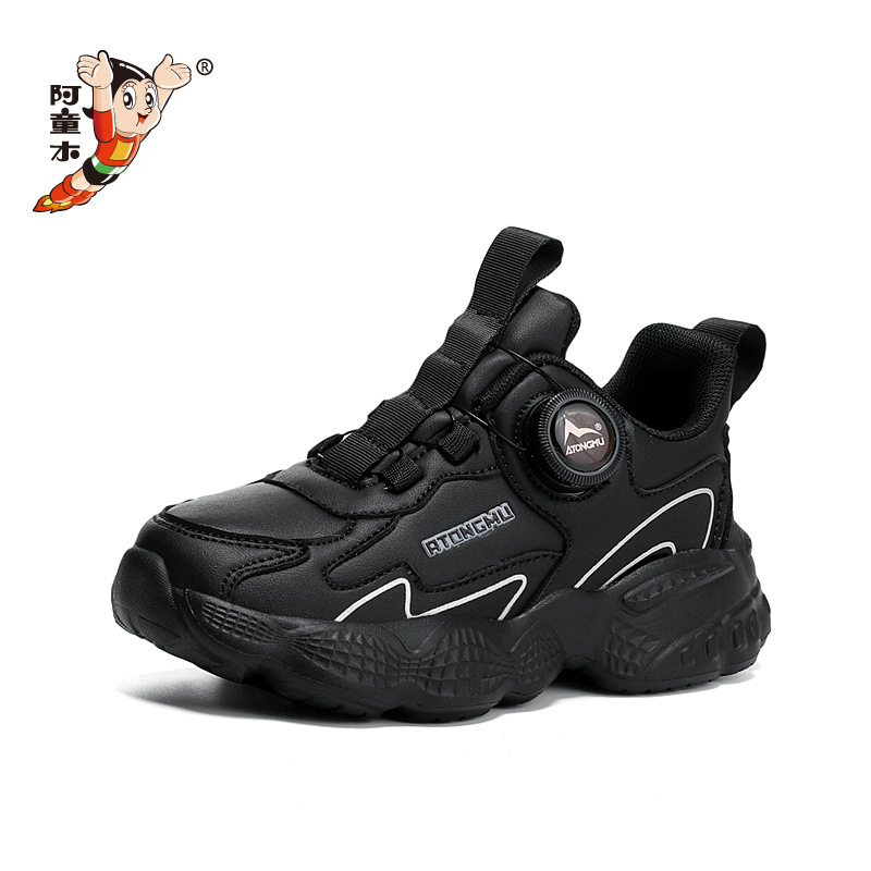 아스트로 보이 어린이 작은 흰색 신발 2024 가을과 겨울 메쉬 통기성 블랙 운동화 남성과 여성의 캐주얼 버튼 신발