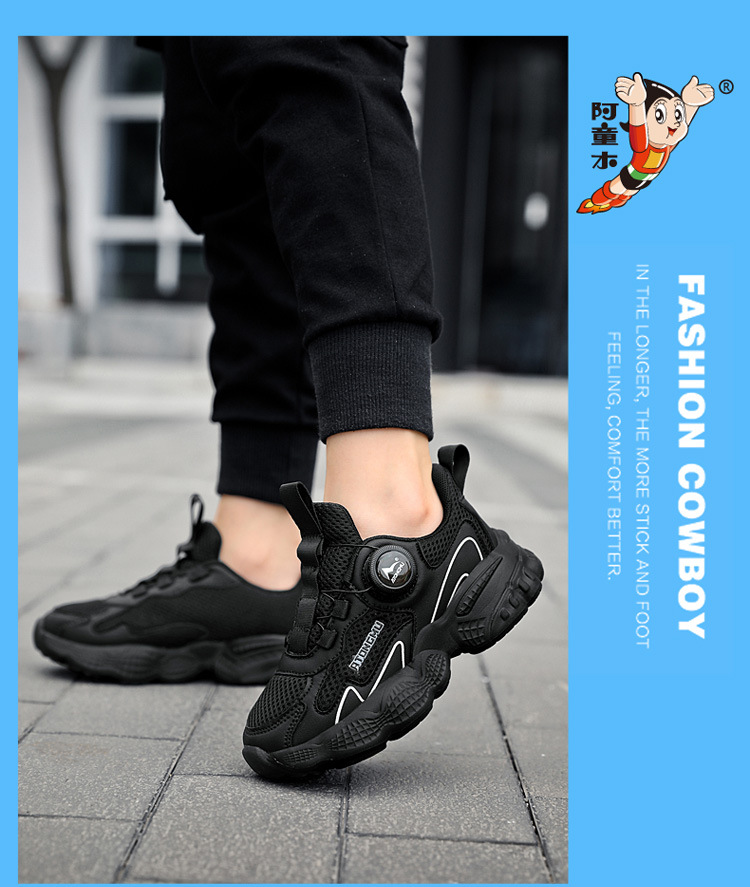 아스트로 보이 어린이 작은 흰색 신발 2024 가을과 겨울 메쉬 통기성 블랙 운동화 남성과 여성의 캐주얼 버튼 신발스토어 가기