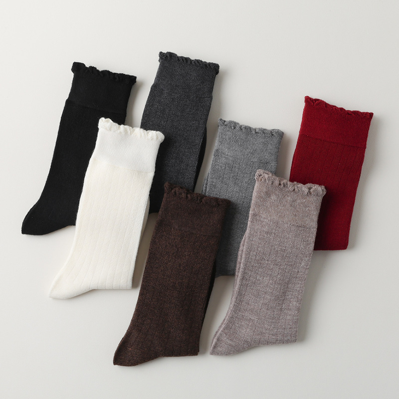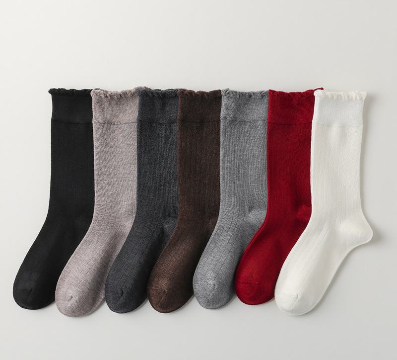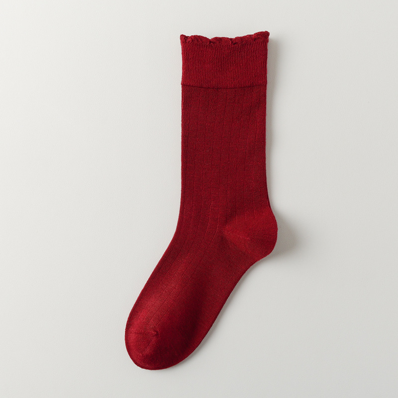 가을과 겨울 새 양모 양말 여성 중간 길이 양말 안젤라 레드 한국 단색 소프트 양말 뼈없는 스택 양말