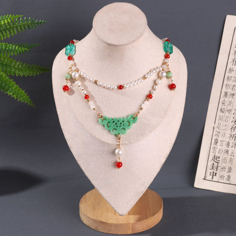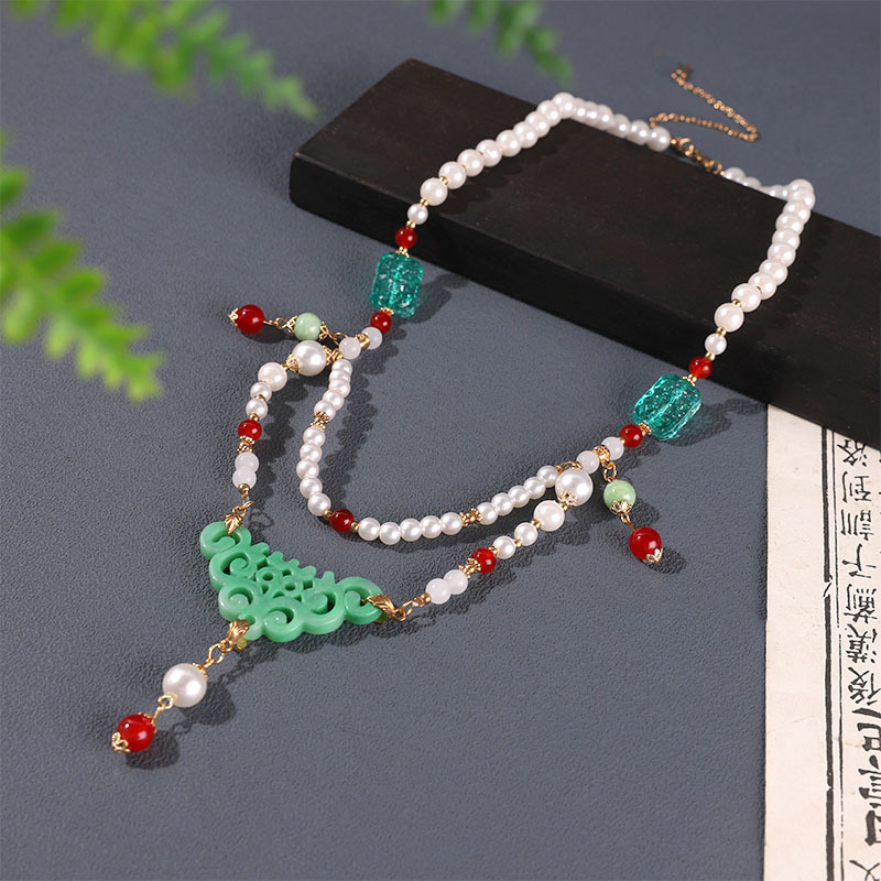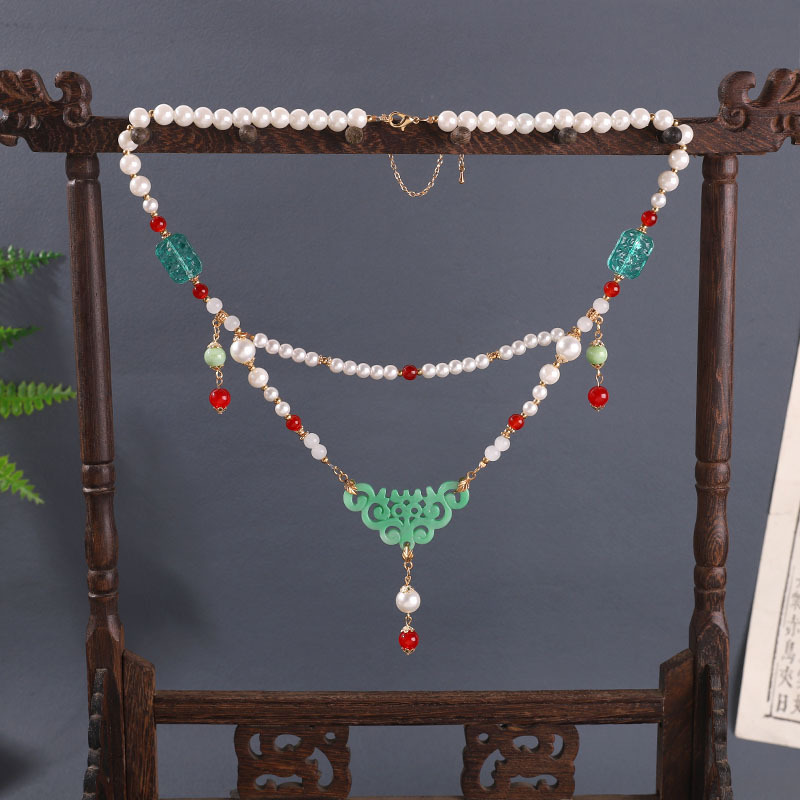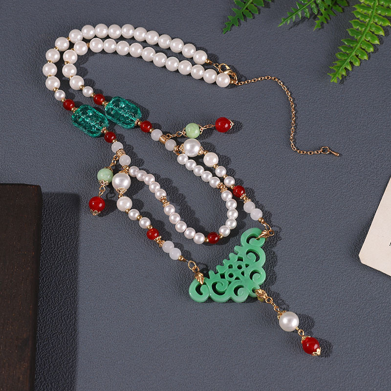 공장 아울렛 새로운 중국 한푸 목걸이 고전 청삼 액세서리 화환 목걸이 목걸이 복고풍 고급 녹색 항목스토어 가기