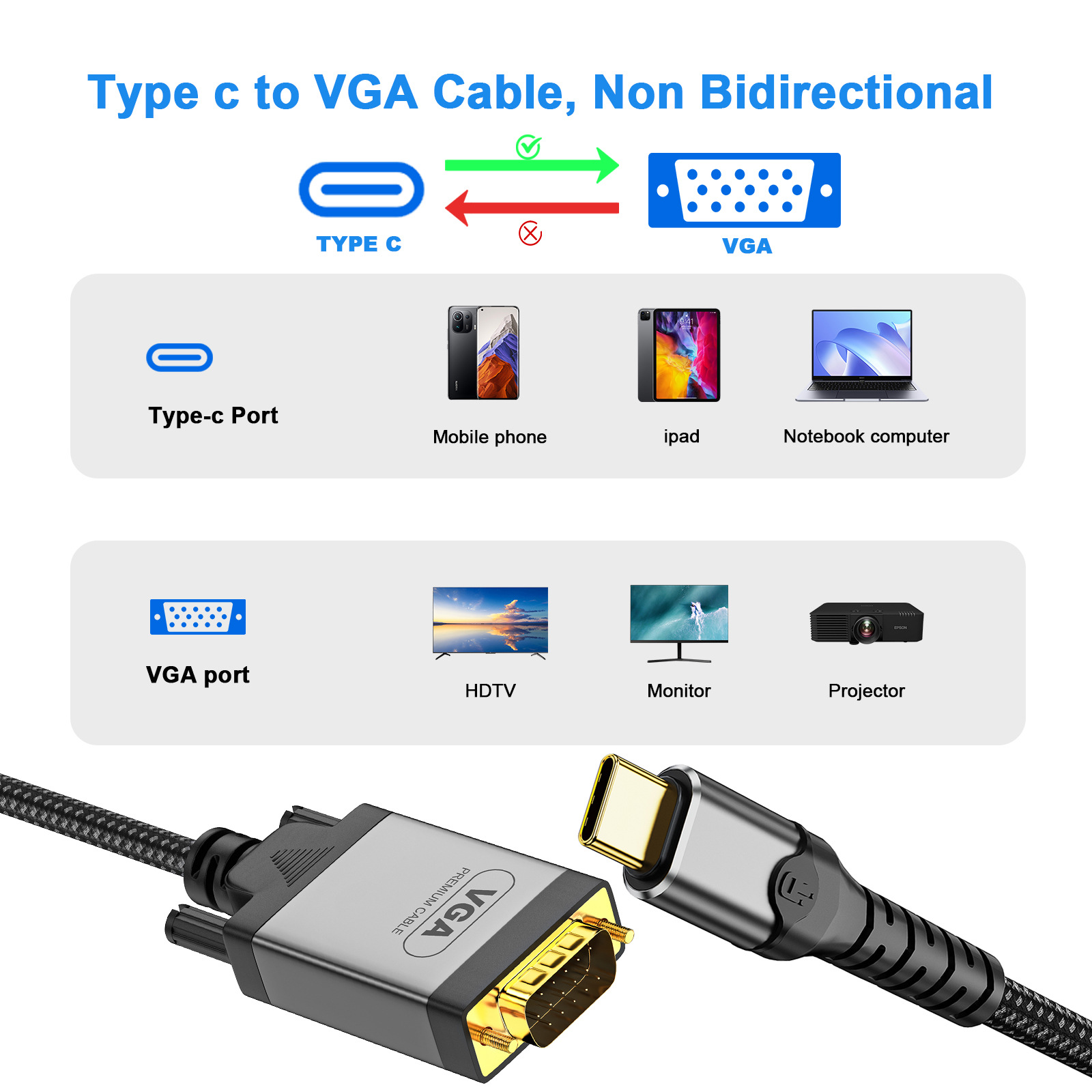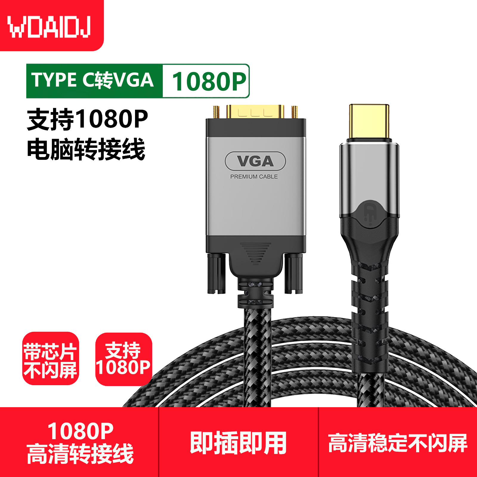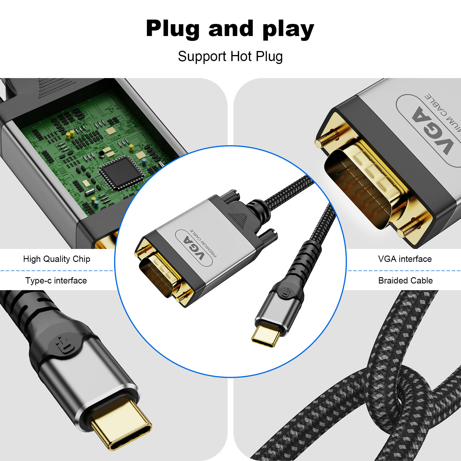 TYPE-C3.1-VGA 수형 커넥터 typec-VGA 어댑터 케이블-CTOVGA 케이블 1080p 다중 인터페이스 플러그