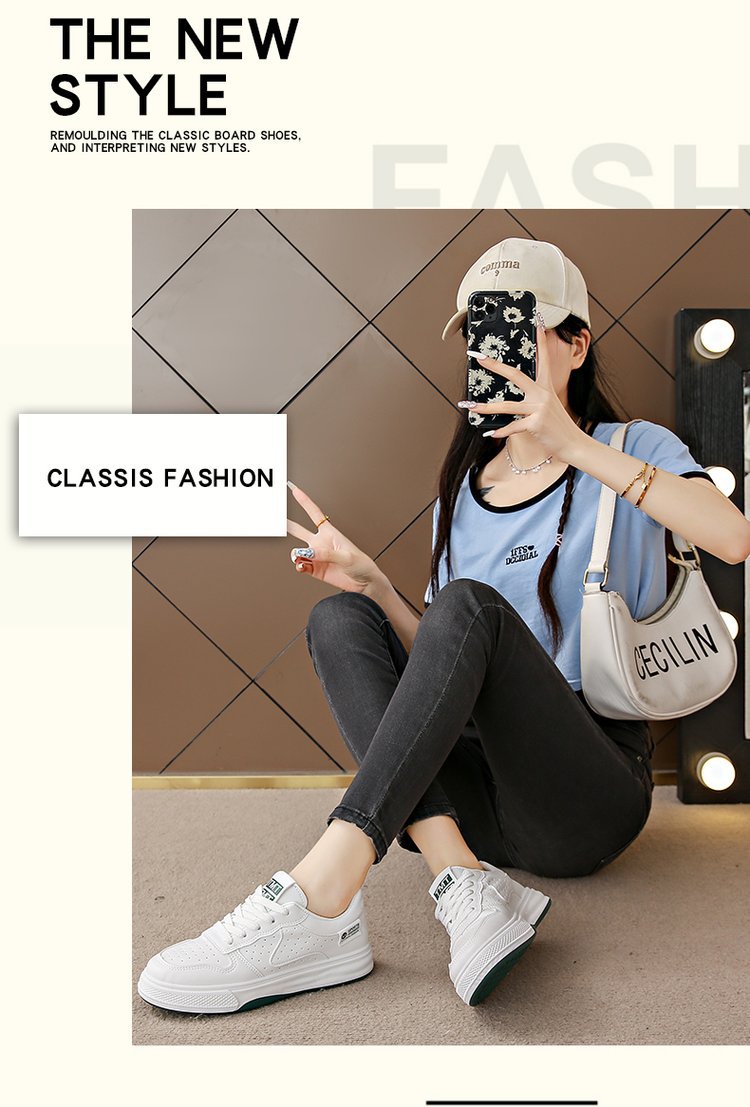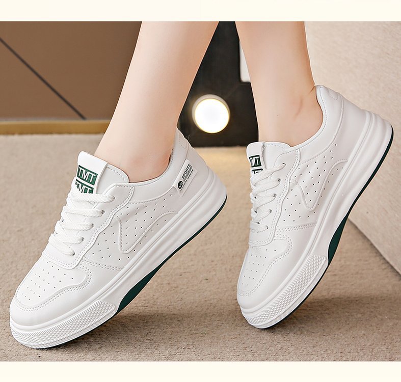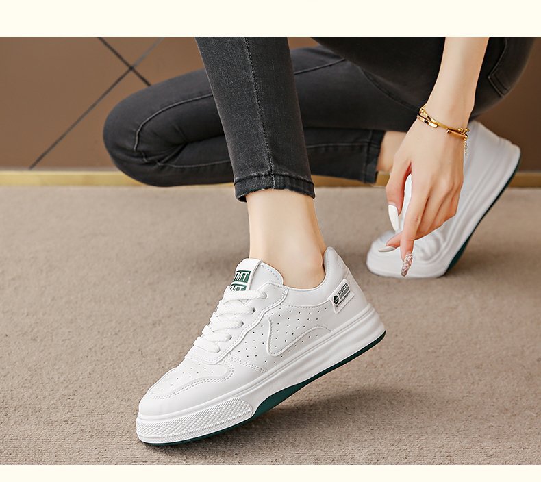2024 가을 새로운 스타일의 보드 신발 여성 플랫 가죽 라이트 여성 신발 여성 캐주얼 스포츠 화이트 신발 여성 도매스토어 가기