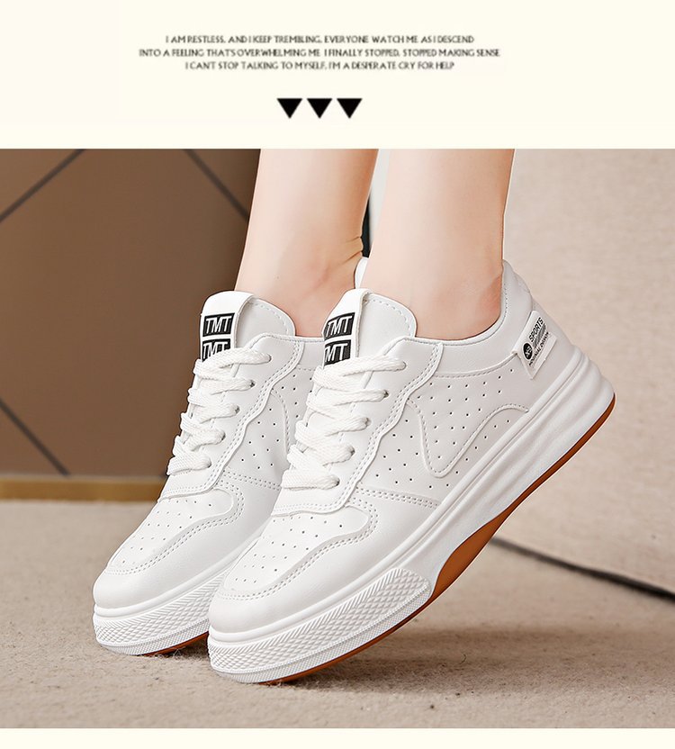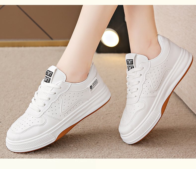 2024 가을 새로운 스타일의 보드 신발 여성 플랫 가죽 라이트 여성 신발 여성 캐주얼 스포츠 화이트 신발 여성 도매