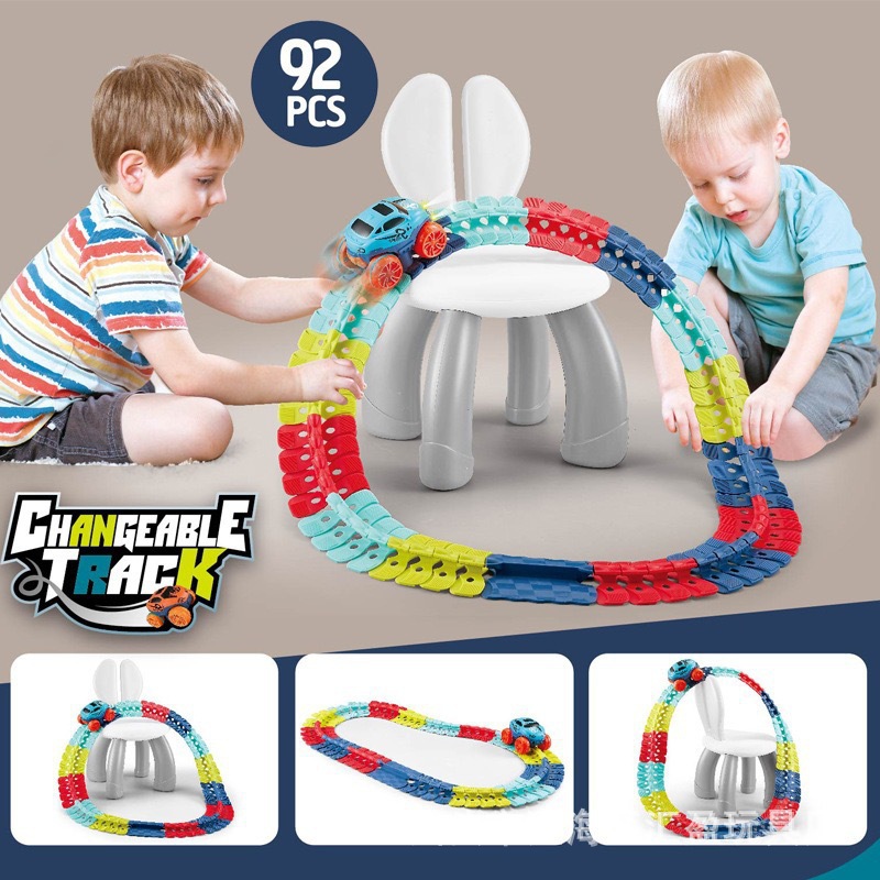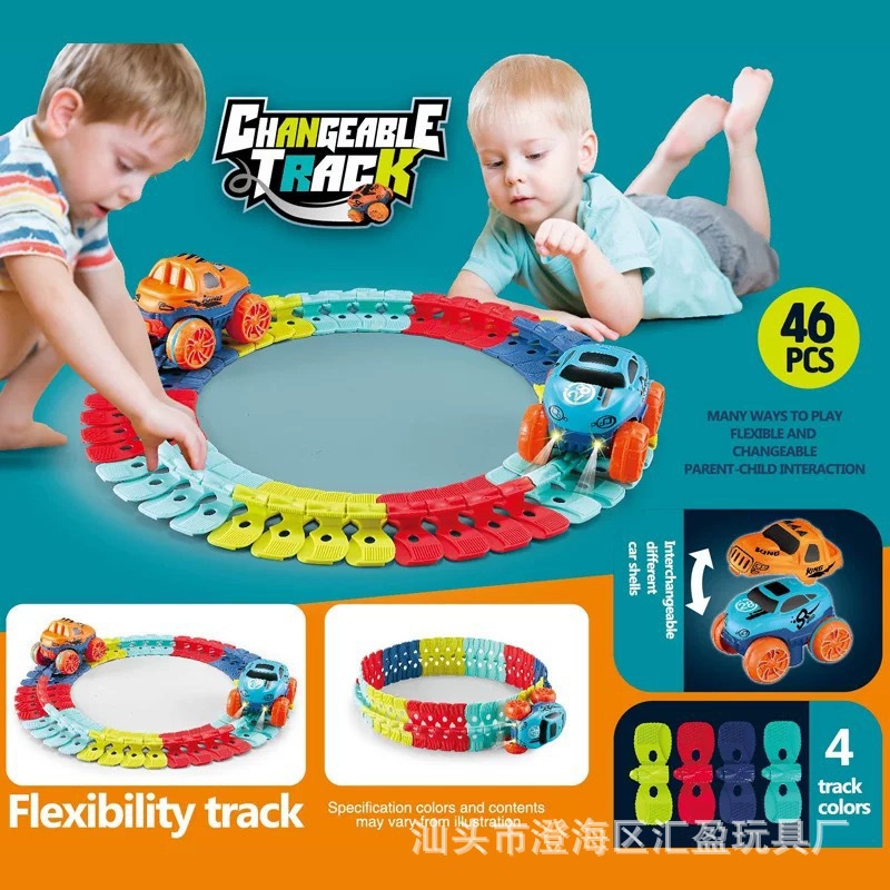 국경 간 어린이 장난감 전기 철도 자동차 장난감 변경 가능한 diy 조립 반 중력 활주로 열차 세트 도매스토어 가기