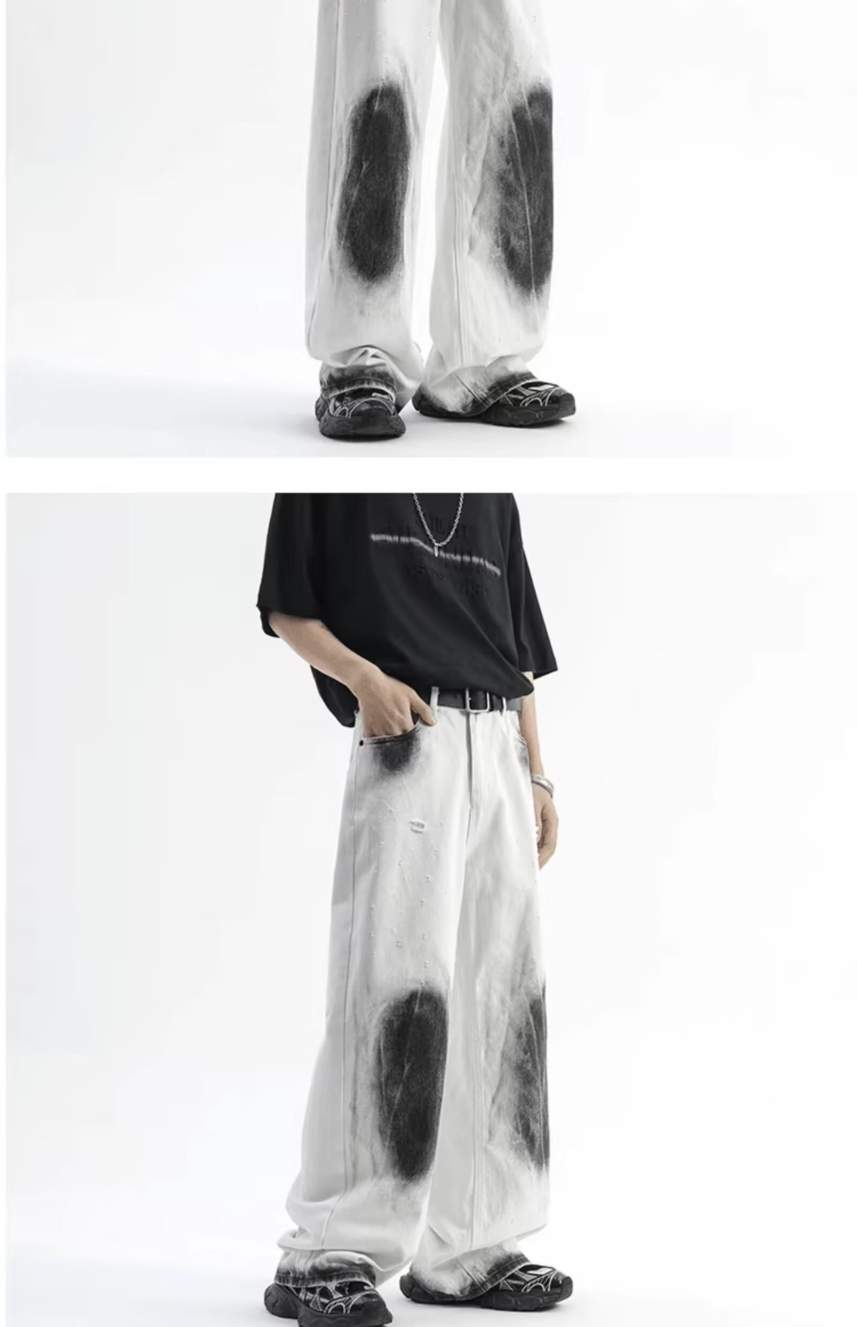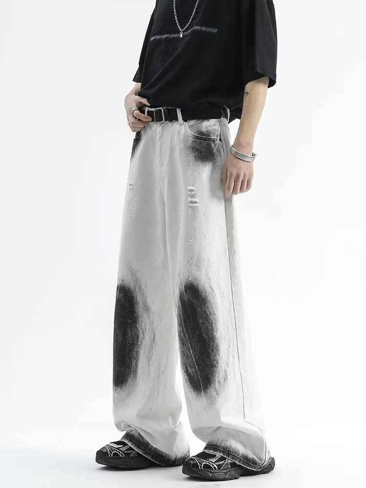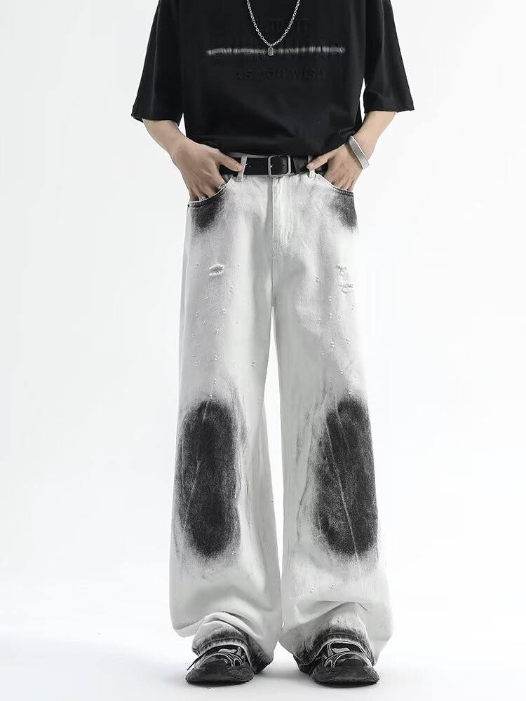 미국의 트렌디 한 핑크 더러운 바지 소년 하이 엔드 센스 팬츠 빈티지 리핑 세척 청바지 트렌디