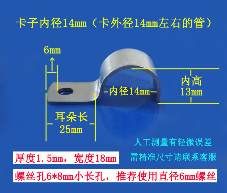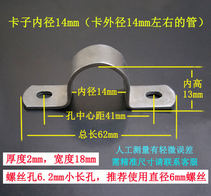 • 내경 14mm(두께 1.5mm, 너비 18mm, 나사 구멍 6*8 타원형 구멍)