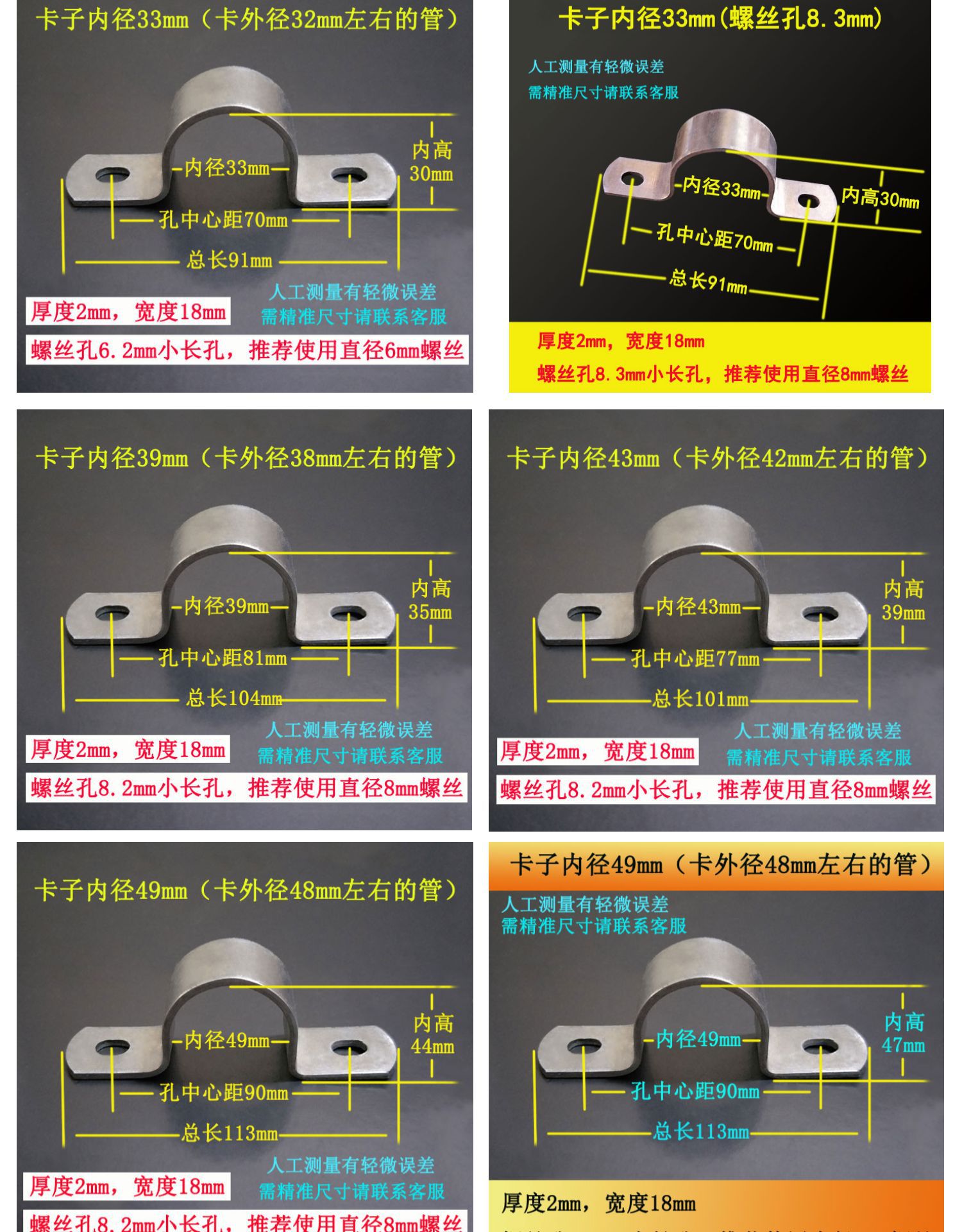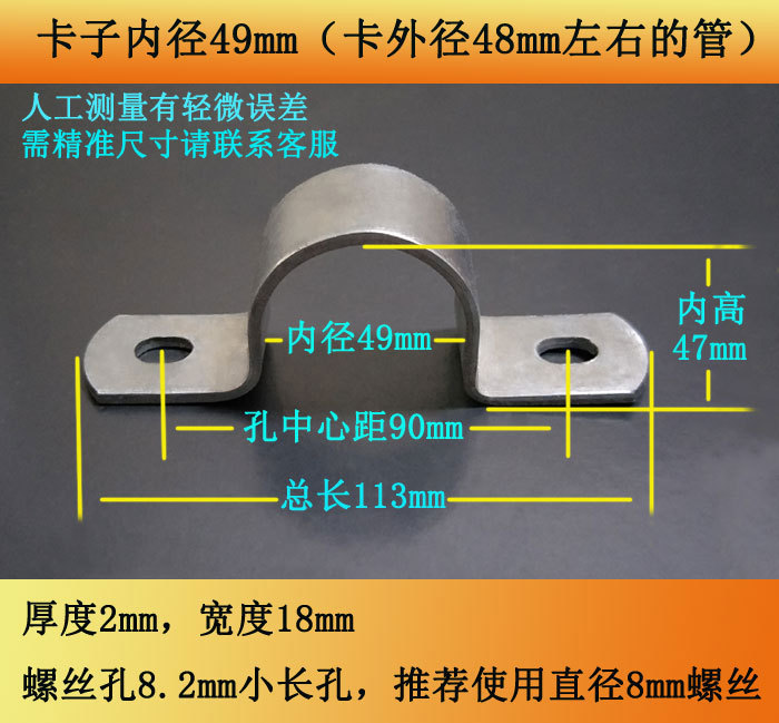 • 49mm(튜브 1.5inch 개, 두께 2mm, 너비 18mm, 나사 구멍 8.2*10 타원형