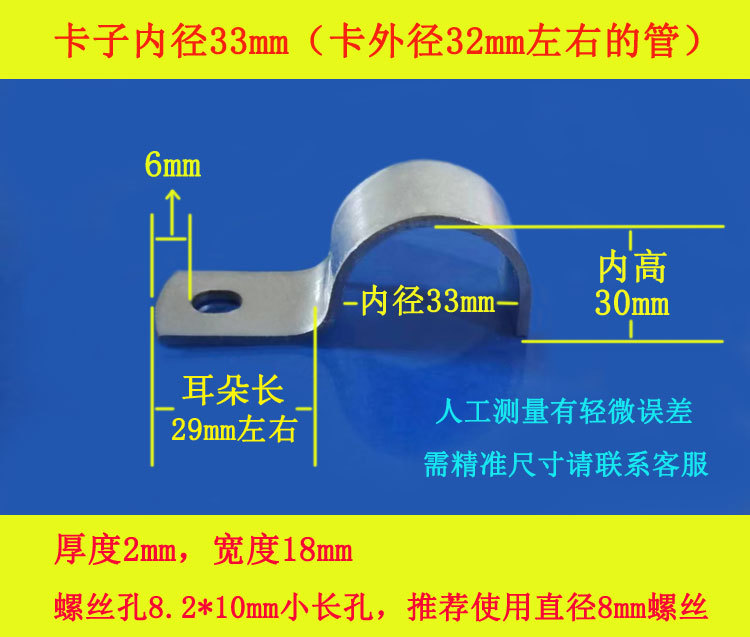 • 33mm(튜브 1inch 개, 두께 2mm, 너비 18mm, 나사 구멍 6*8 타원형 구멍