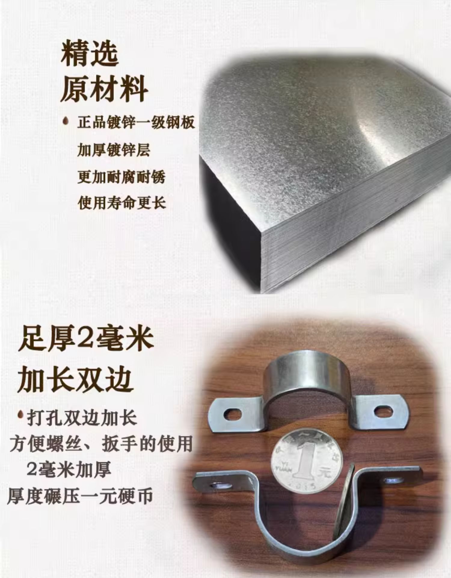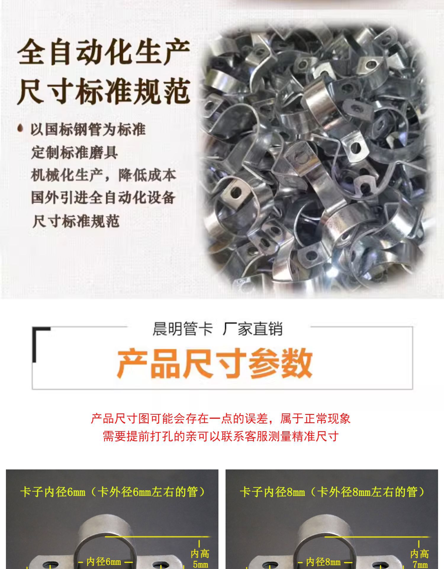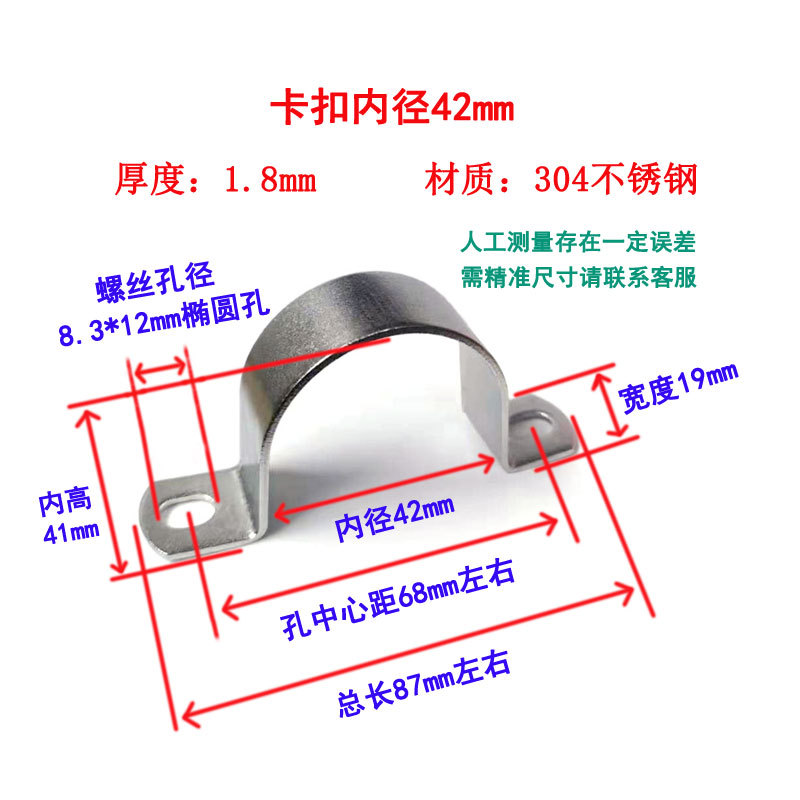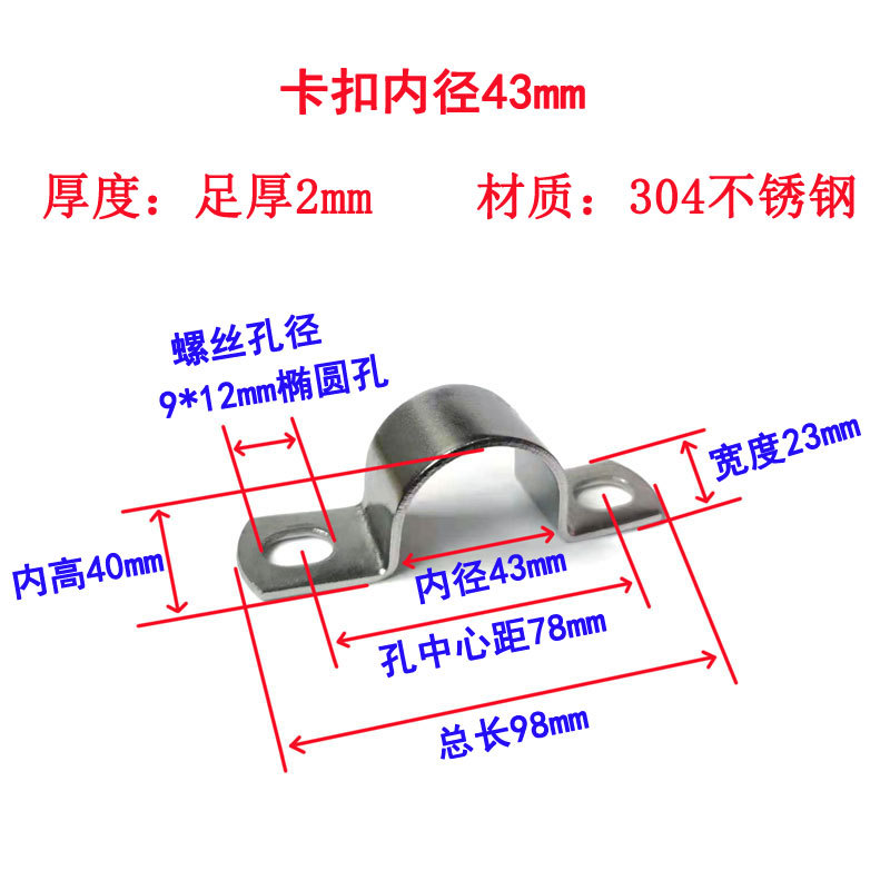 • 43mm (직경 1.2inch 파이프, DN32 파이프, 외경 40, 나사 구멍 8.3*10에 사용 가능)