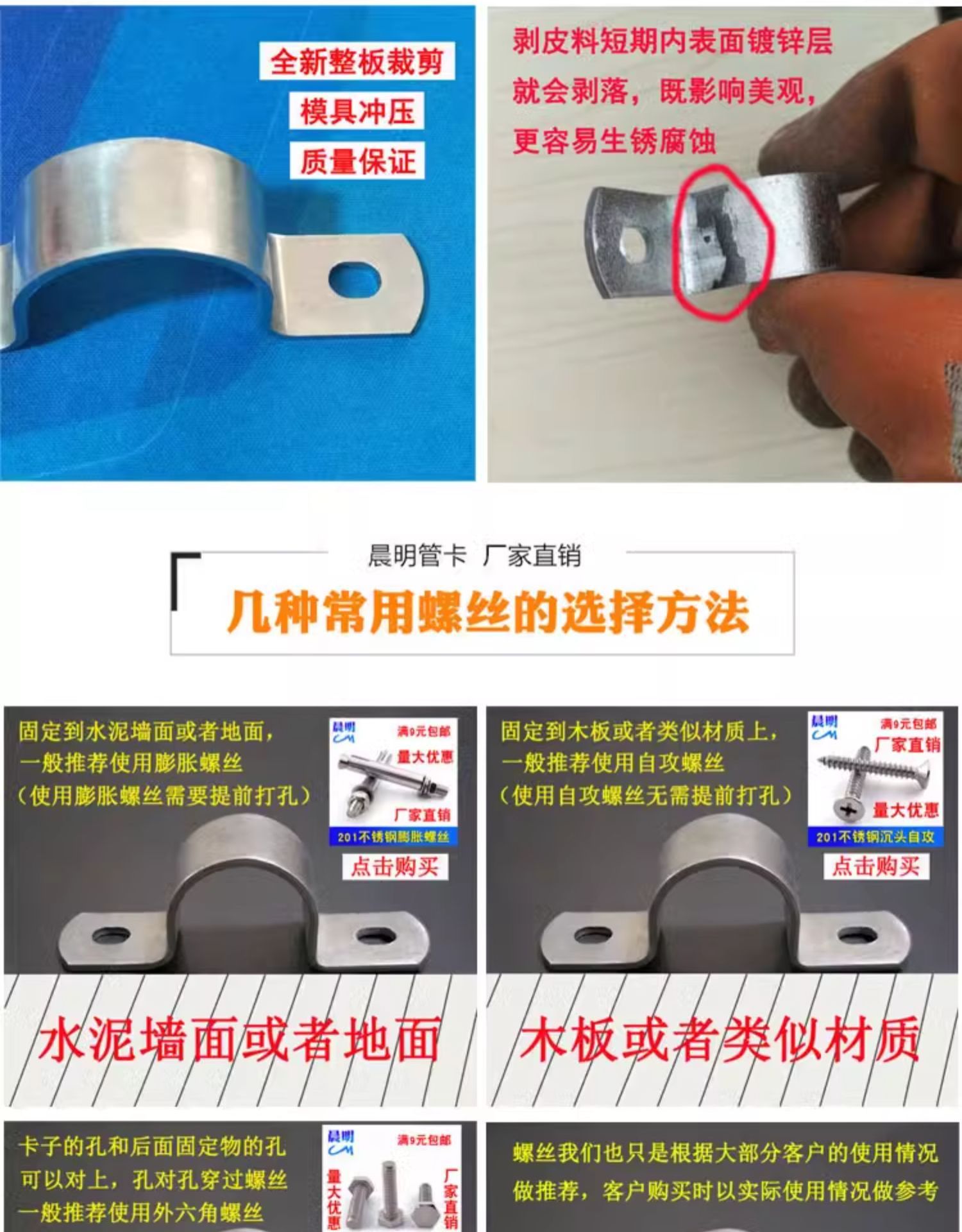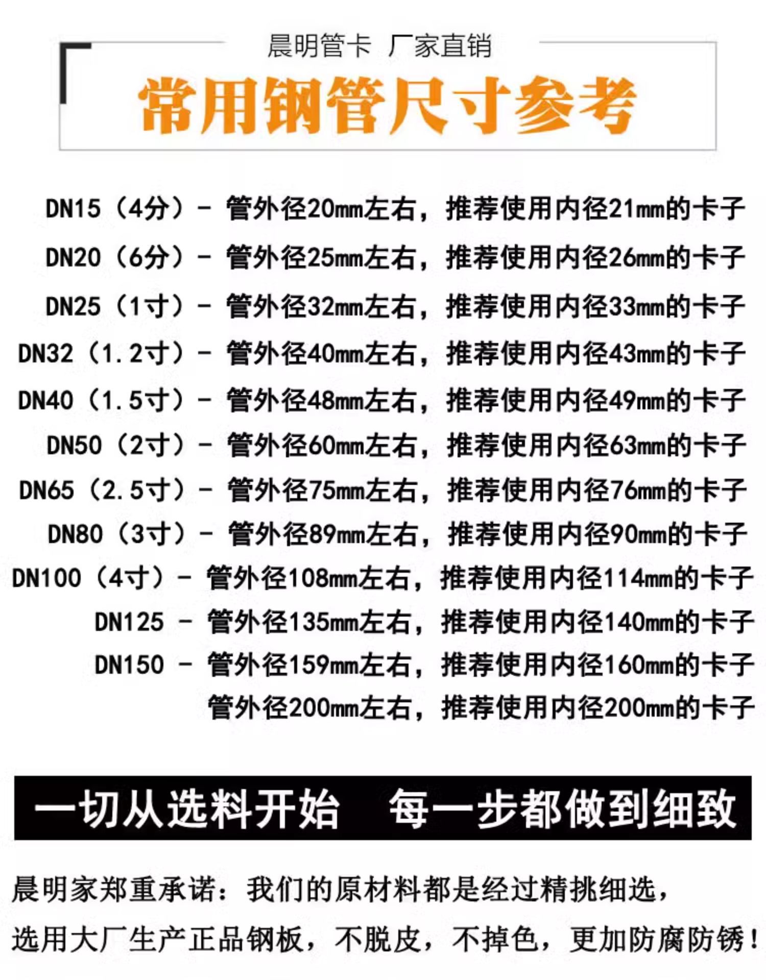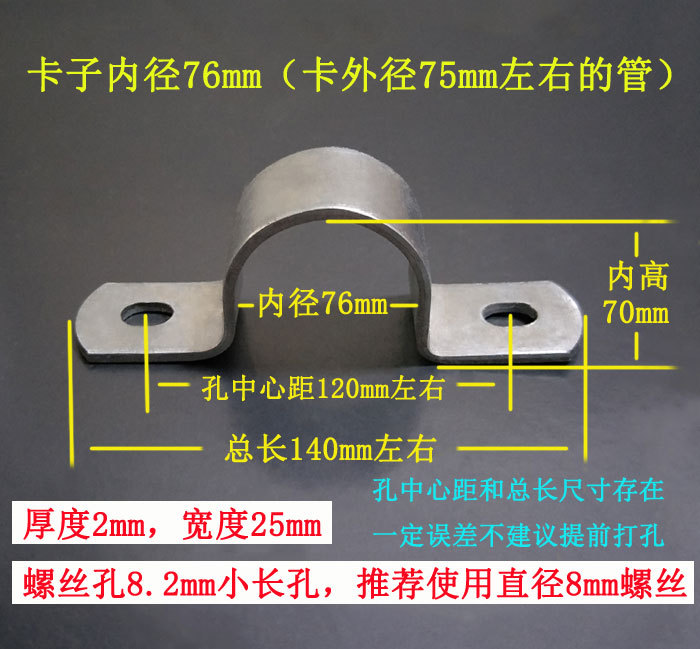 • 76mm( 2.5inch 파이프, DN65 파이프, 외경 75 파이프, 나사 구멍 8.3*10에 사용 가능)