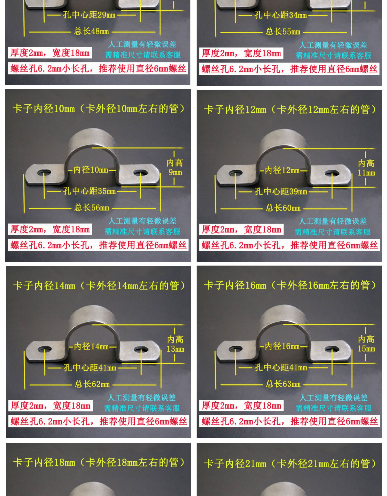 • 내경 16mm(두께 2mm, 너비 18mm, 나사 구멍 6*8 타원형 구멍)