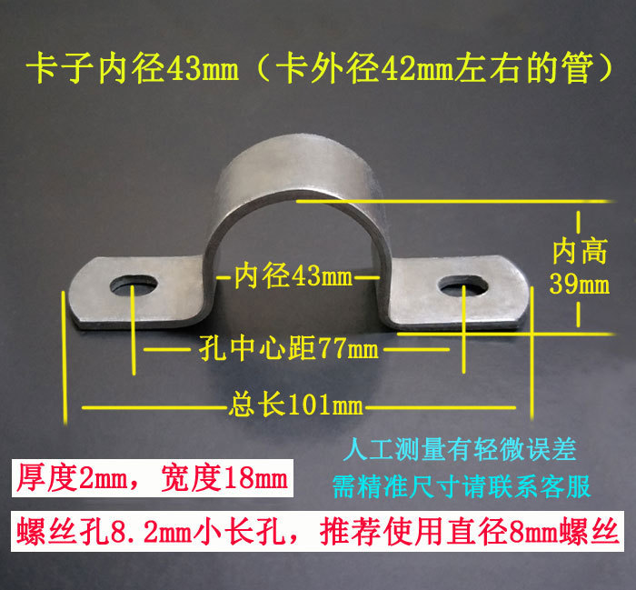 • 43mm (튜브 1.2inch 개, 두께 2mm, 너비 18mm, 나사 구멍 8.2*10 타원형