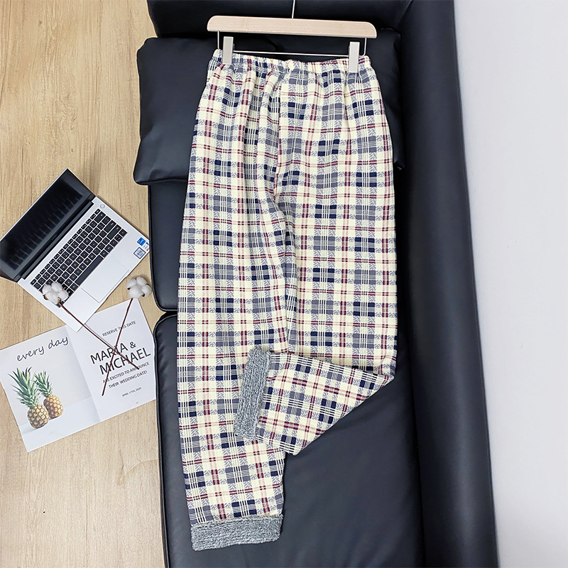 니트 퀼트 파자마 바지 남자 가을 겨울 캐주얼 격자 무늬 바지 두꺼운 따뜻한 바지 남자 홈 옷스토어 가기