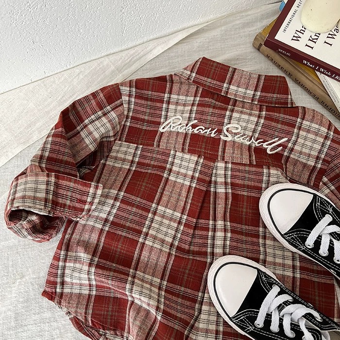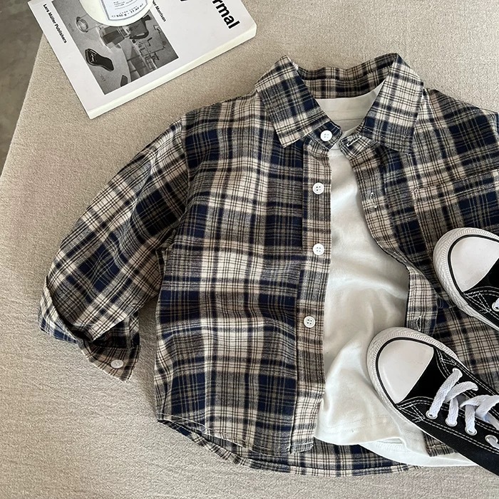 소년 격자 무늬 셔츠 가을 어린이 2025 새로운상의 소녀 가을 의류 유행 아기 유행 브랜드 셔츠 긴 소매스토어 가기