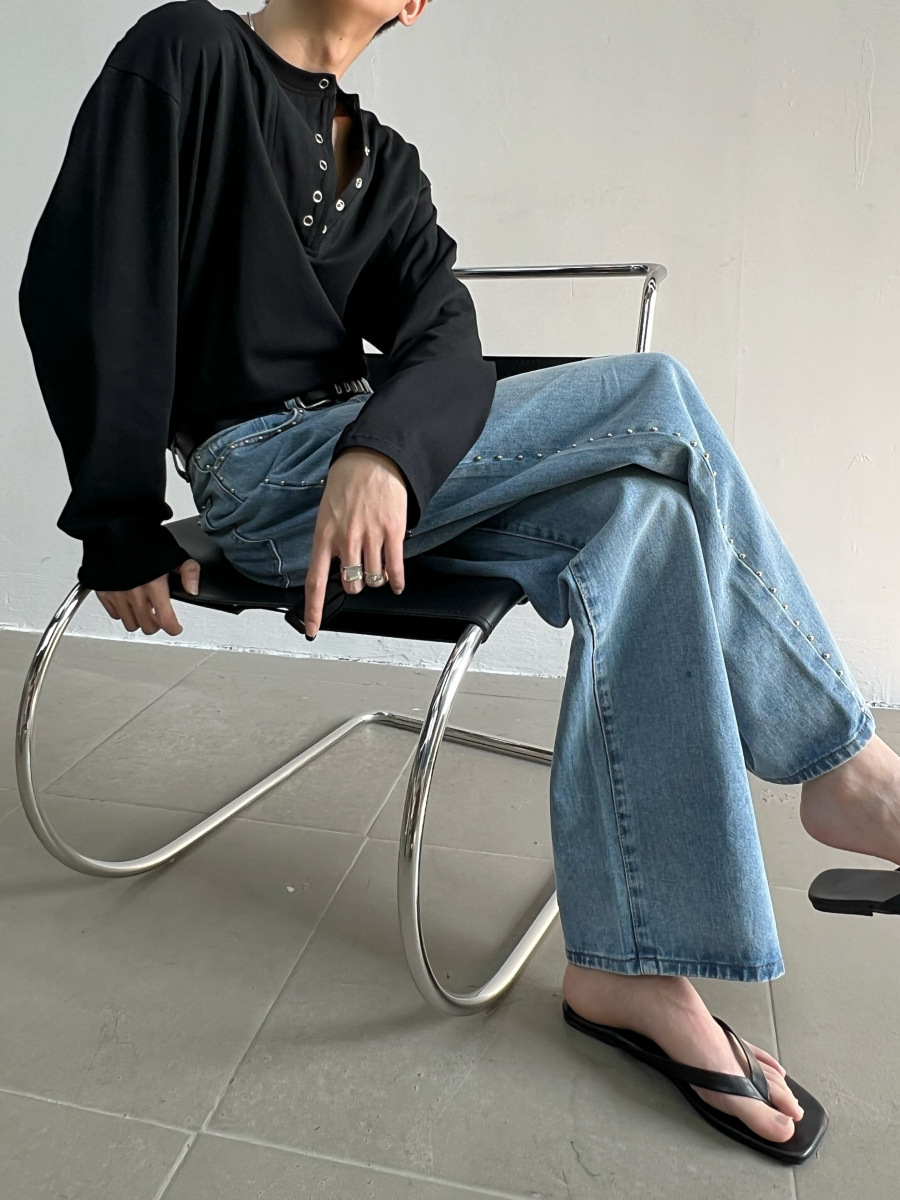 니치 디자인 칼라 버튼 옷깃 긴팔 티셔츠 남자 가을 올매치 게으른 캐주얼 루즈 티셔츠