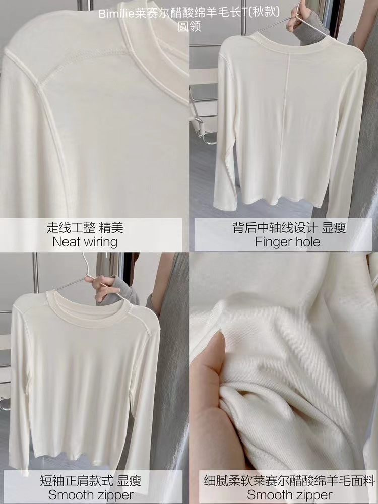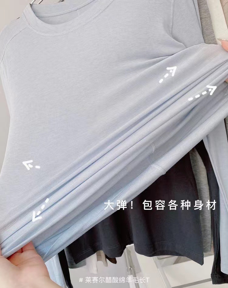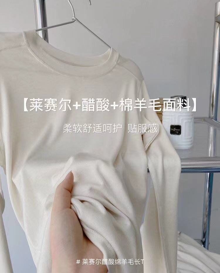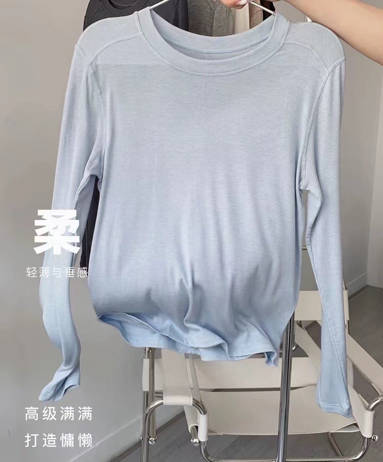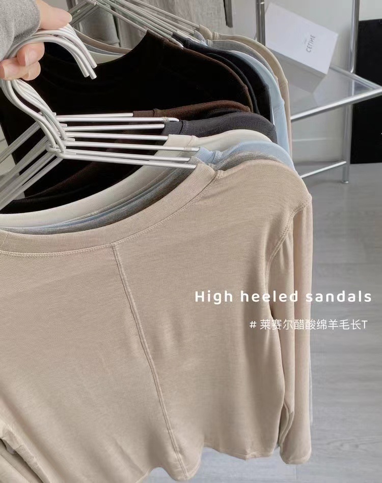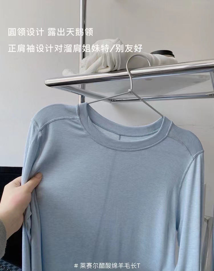얇은 레이셀 아세테이트 울 텐셀 소재의 부드럽고 촉감 좋은 라운드넥 이너웨어, 슬림하고 우아한 긴팔 9936스토어 가기