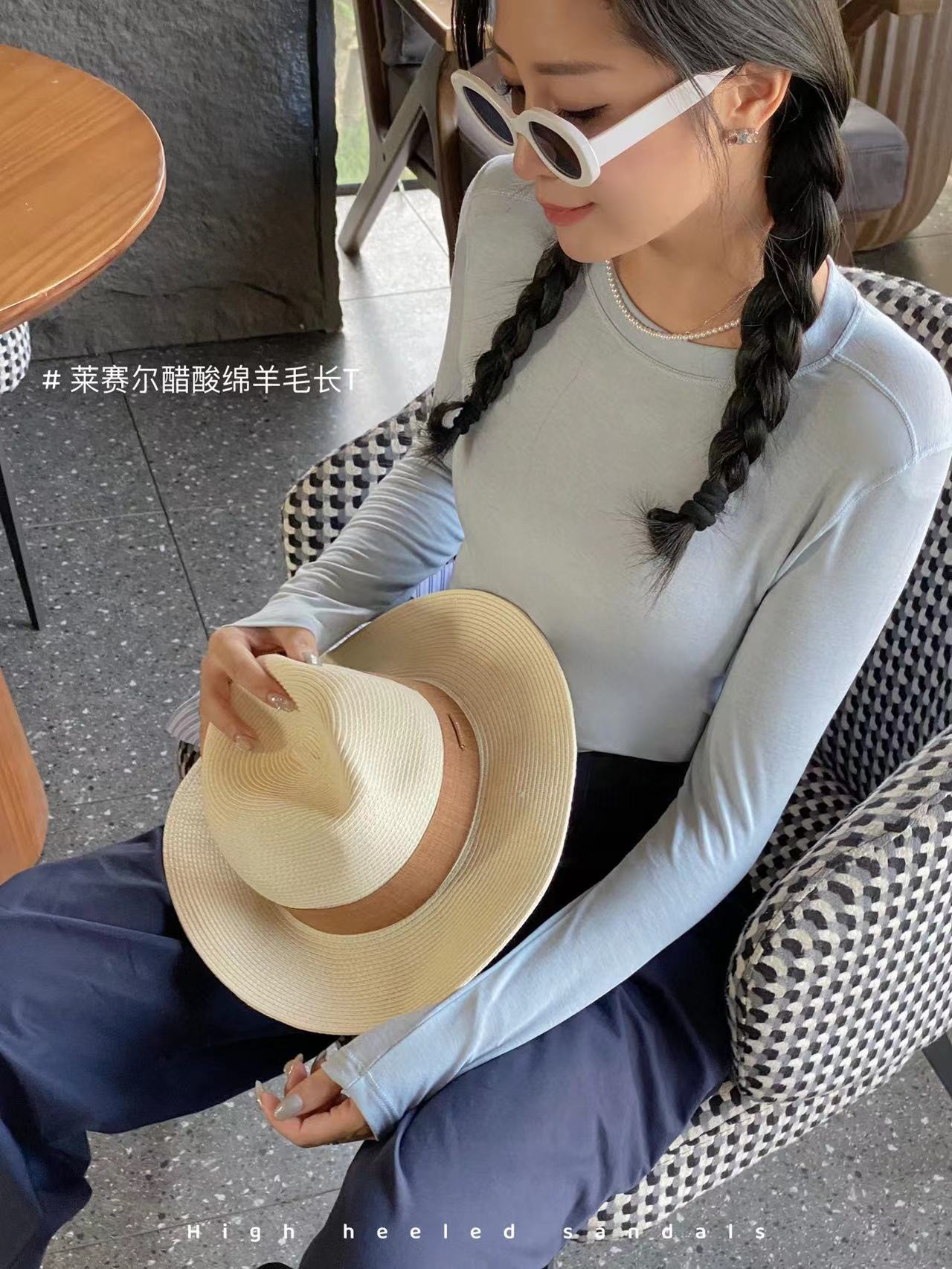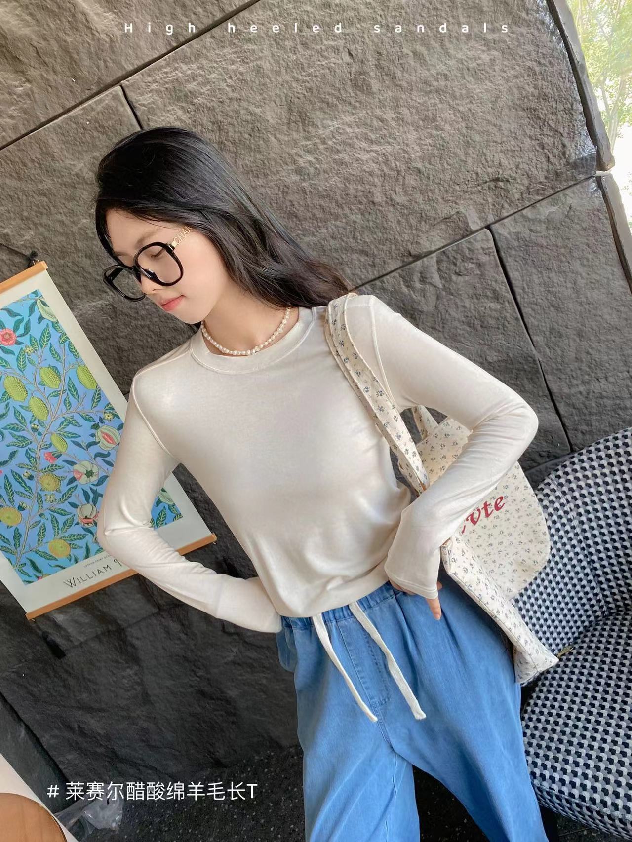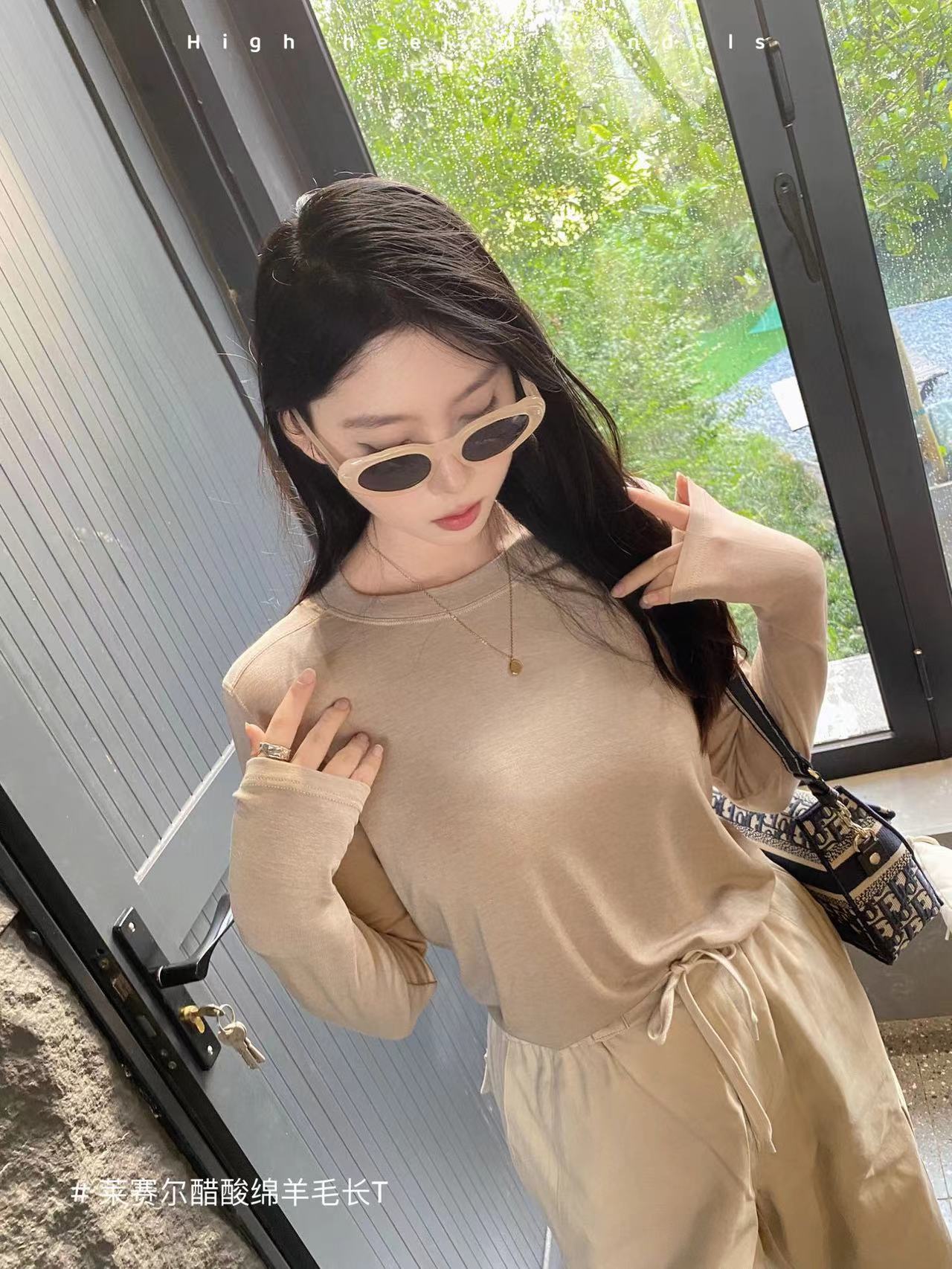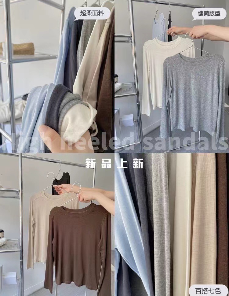 얇은 레이셀 아세테이트 울 텐셀 소재의 부드럽고 촉감 좋은 라운드넥 이너웨어, 슬림하고 우아한 긴팔 9936스토어 가기