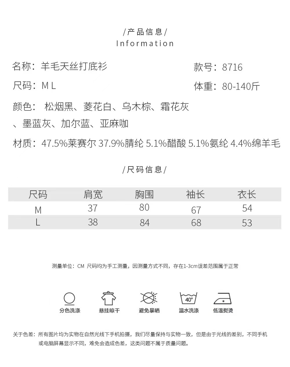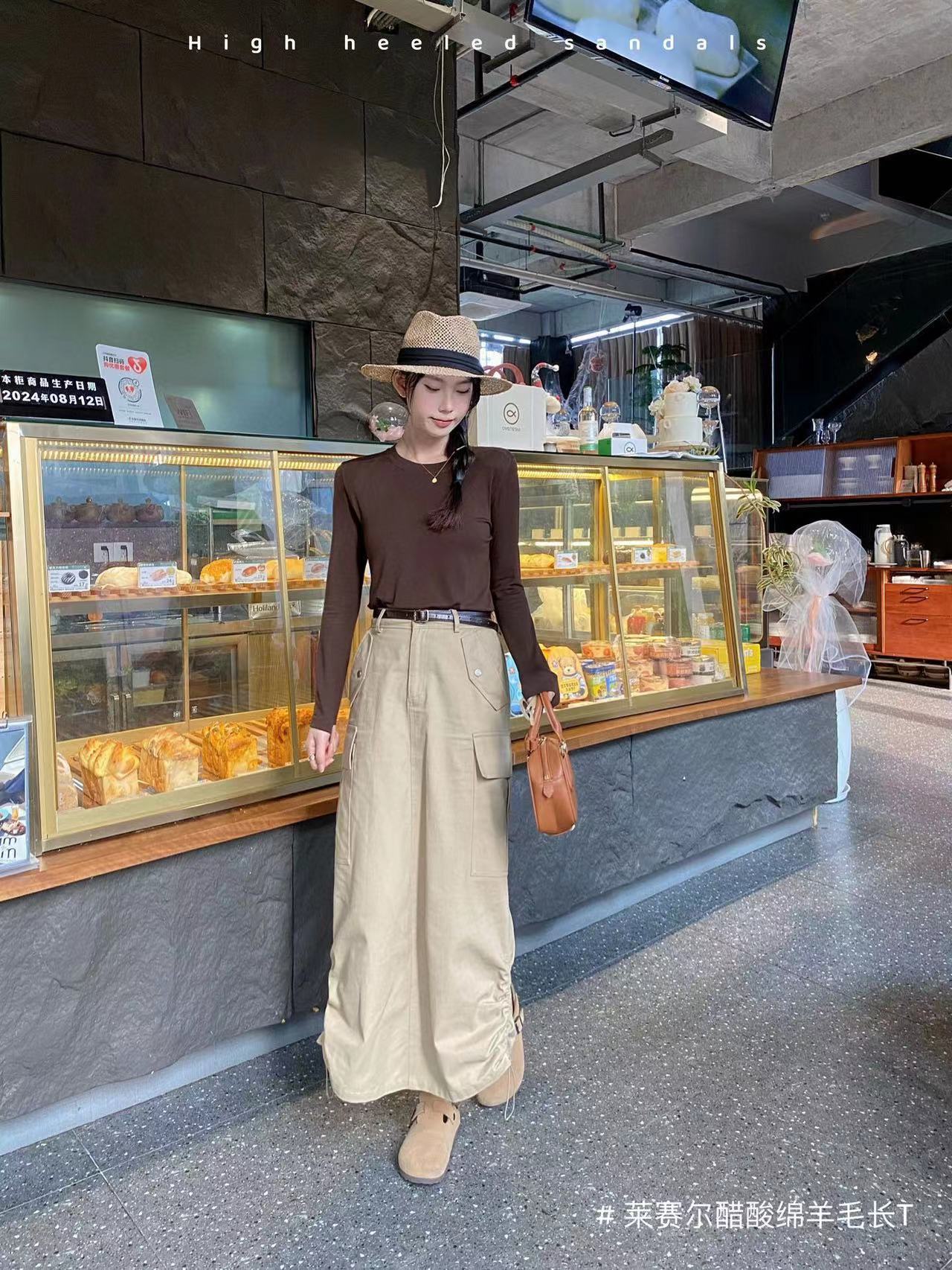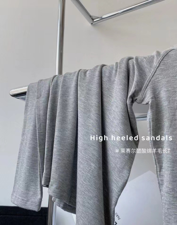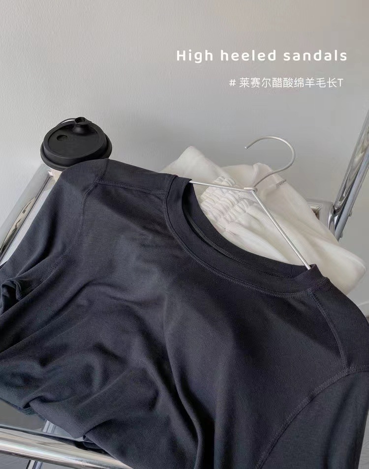 얇은 레이셀 아세테이트 울 텐셀 소재의 부드럽고 촉감 좋은 라운드넥 이너웨어, 슬림하고 우아한 긴팔 9936