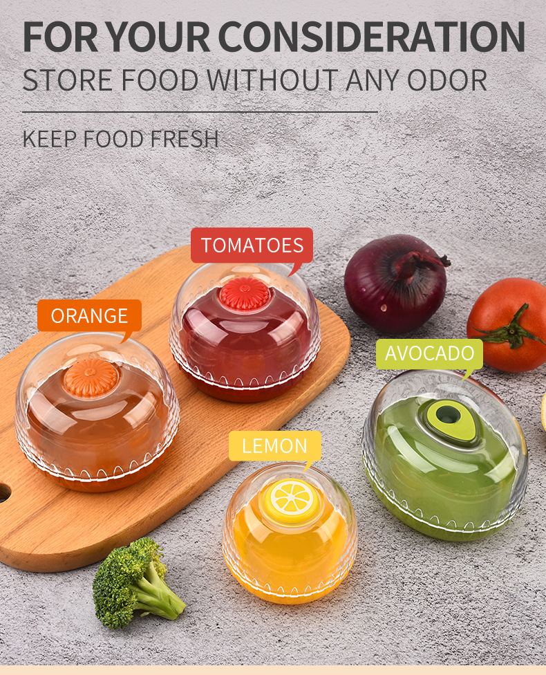 새로운 재고 냉장고 신선한 보관 상자 세트 식품 등급 주방 가정용 저장 상자 아보카도 레몬 토마토 보관