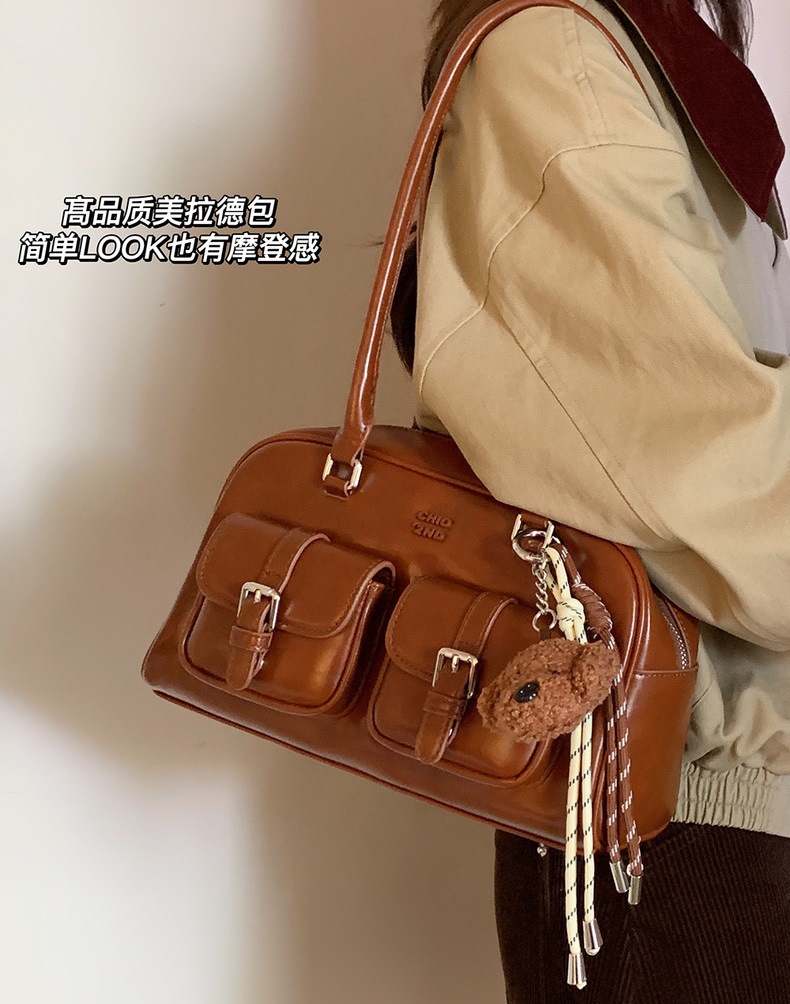 난펑 치오 제 2 삼바 라운지 베개 가방 여성 가을 빈티지 보스턴 가방 통근 휴대용 어깨 가방