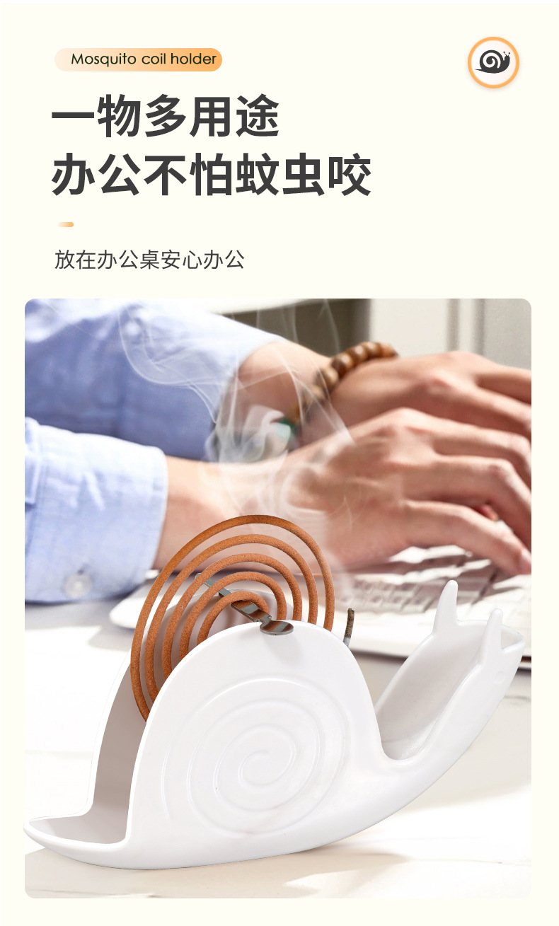 가정용 모기 퇴치 향 상자 내화 방지 및 발화 방지 크리에이티브 달팽이 모기 퇴치 향 트레이 모양 모기 퇴치 향 랙 욕실 샌들 우드 그레이 트레이