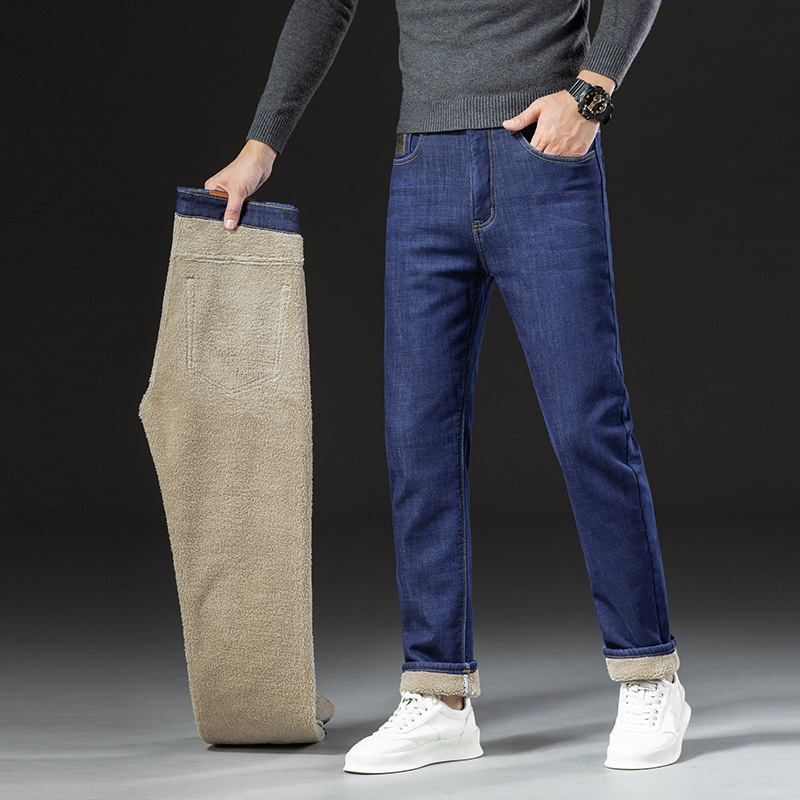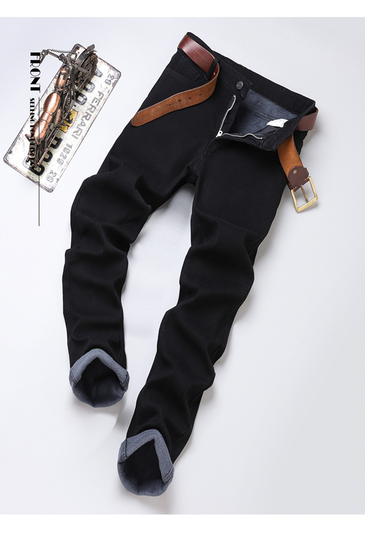 검은 청바지 남자 기모 두껍게 슬림핏 한국식 청소년 바지 유행 올매치 폭발성 겨울 따뜻한 바지