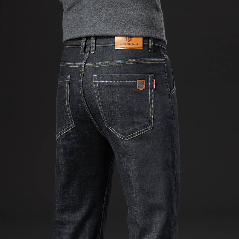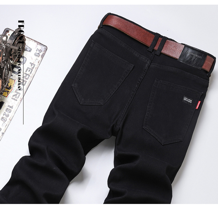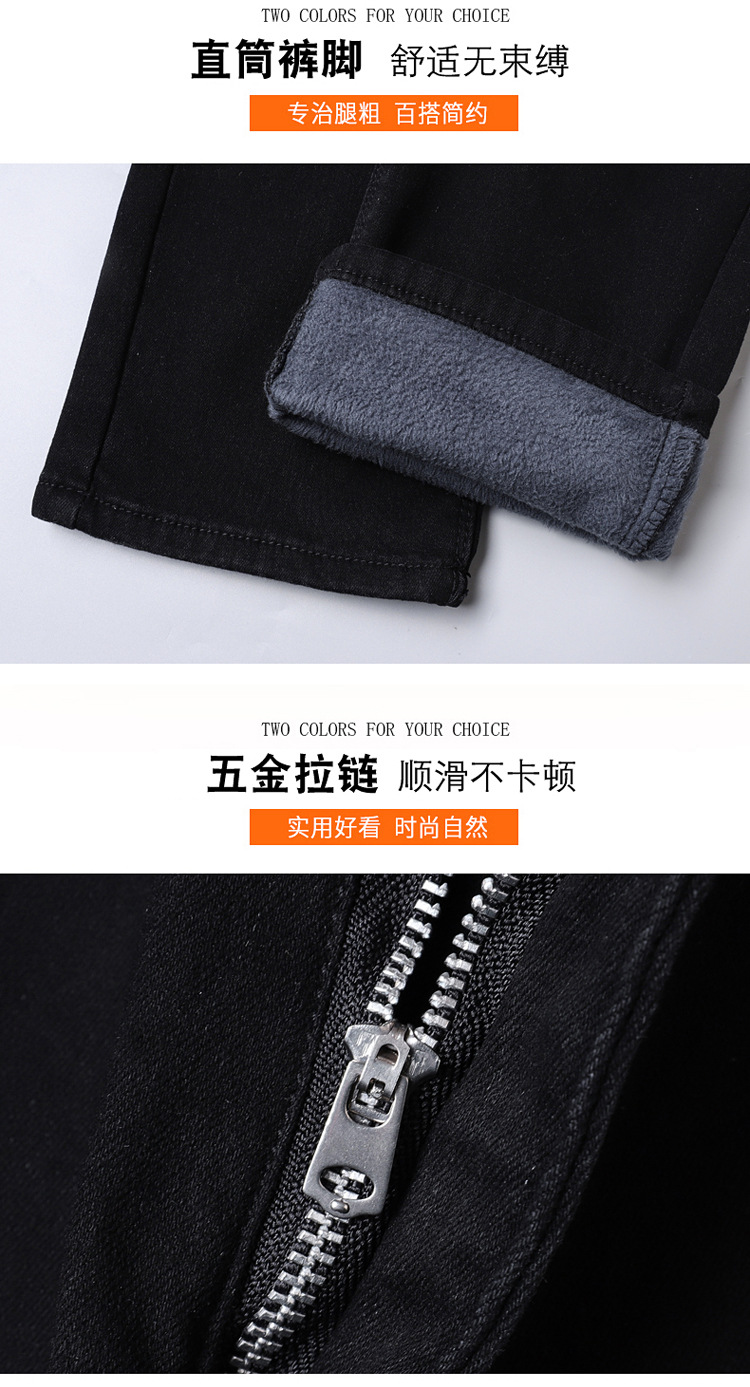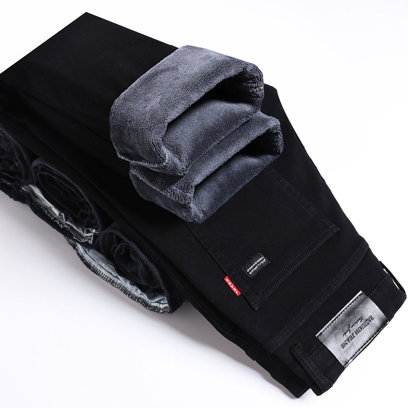 검은 청바지 남자 기모 두껍게 슬림핏 한국식 청소년 바지 유행 올매치 폭발성 겨울 따뜻한 바지스토어 가기