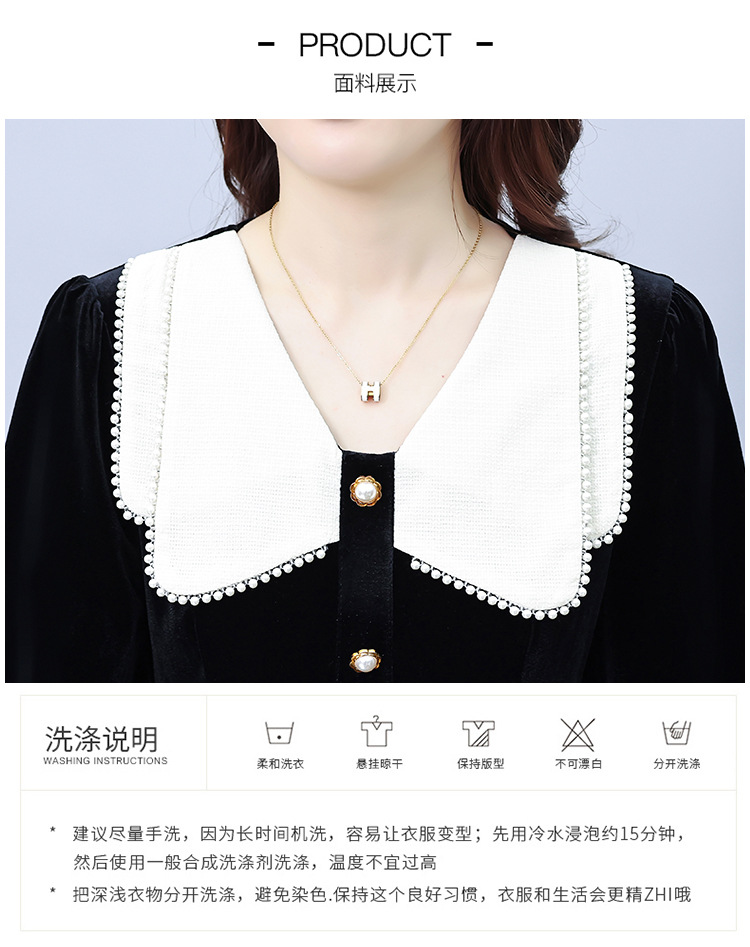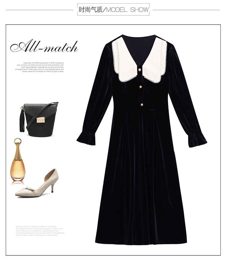 프랑스 레트로 인형 칼라 벨벳 원피스 여성 가을 2024 새로운 높은 허리 슬리밍 우아한 V 넥 작은 검은 원피스스토어 가기