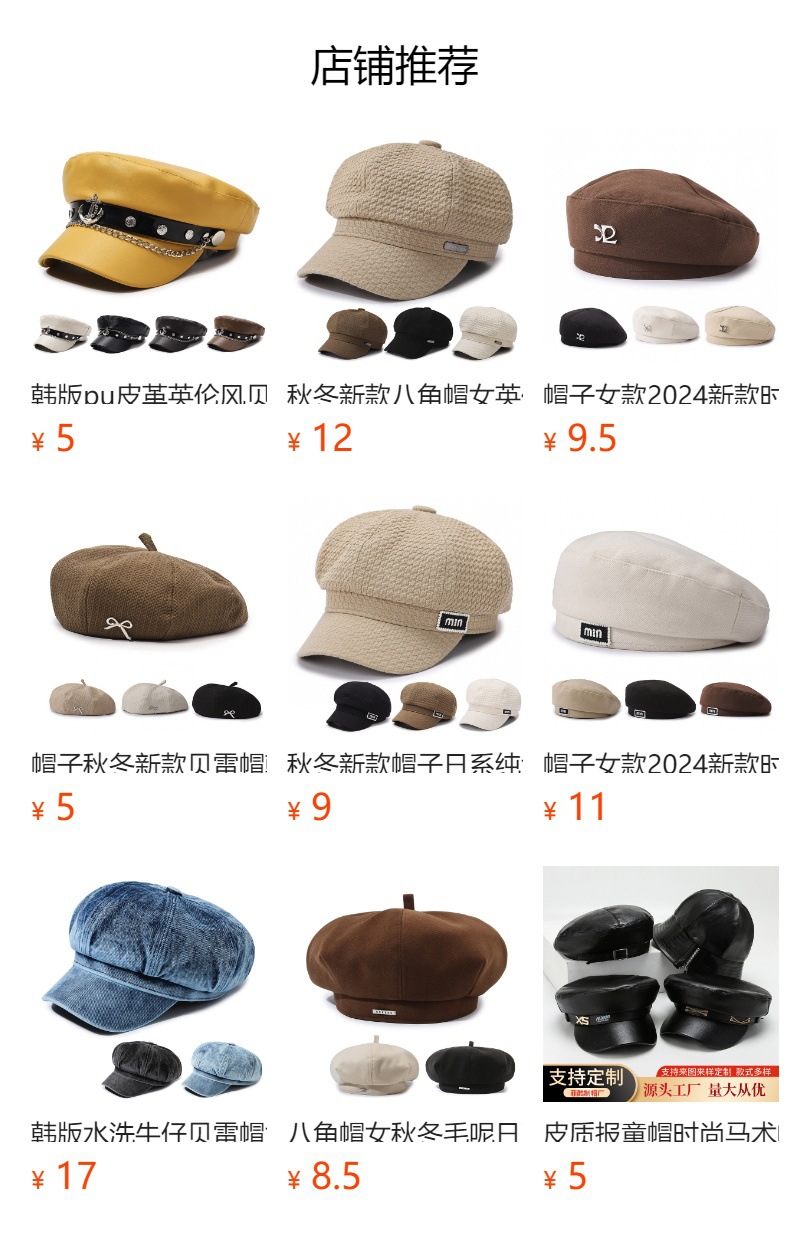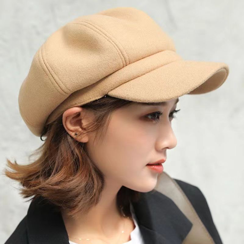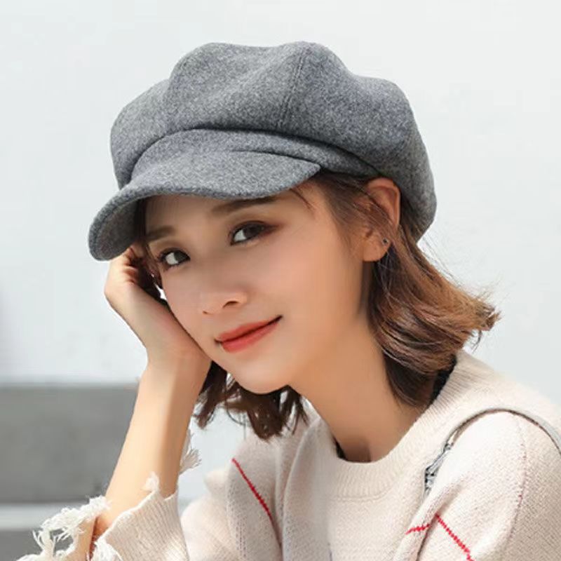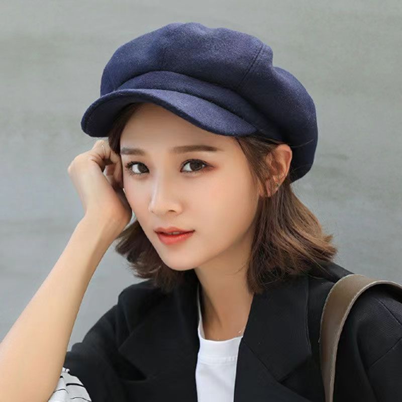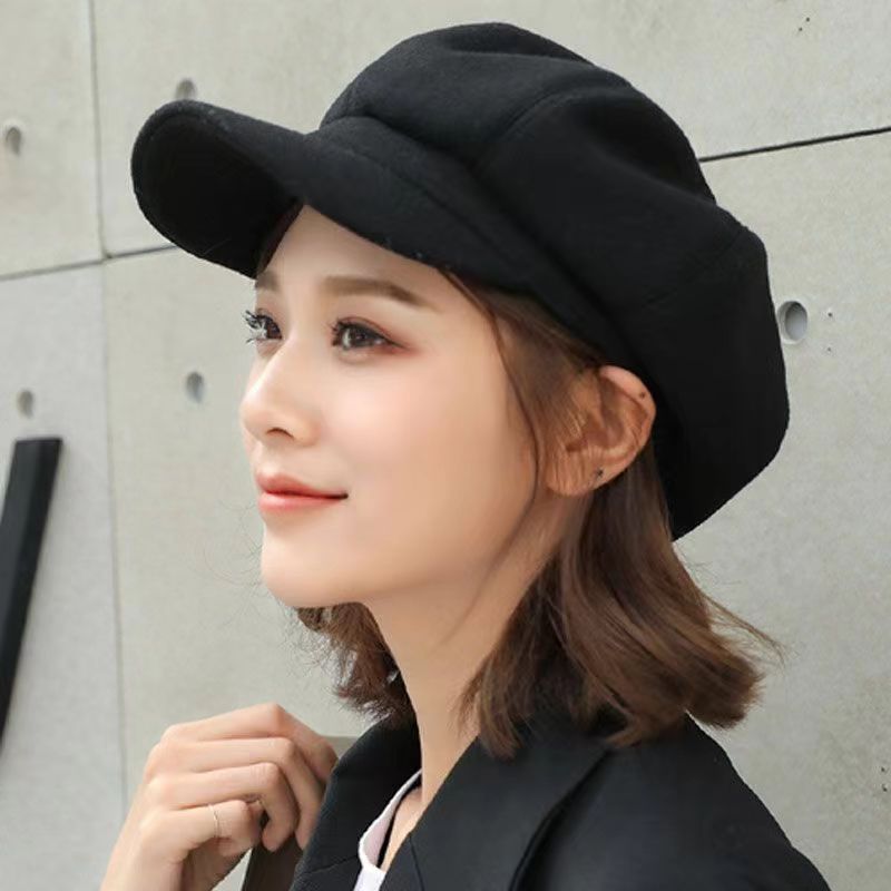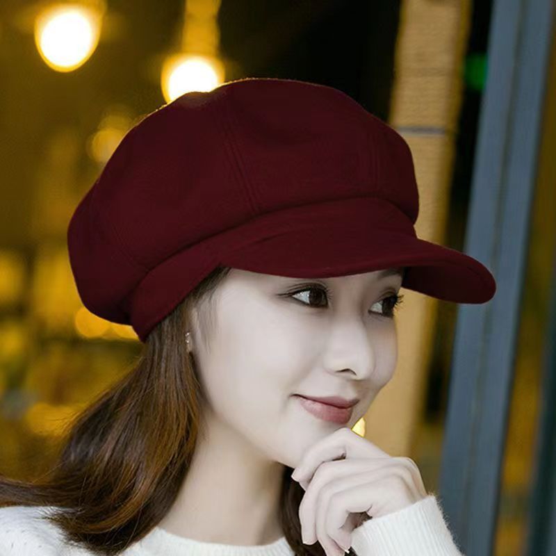 가을과 겨울 새로운 일본 단색 팔각형 모자 여성의 영국 스타일 복고풍 패션 얼굴 작은 베레 올 매치 뉴스 보이 캡 트렌디스토어 가기