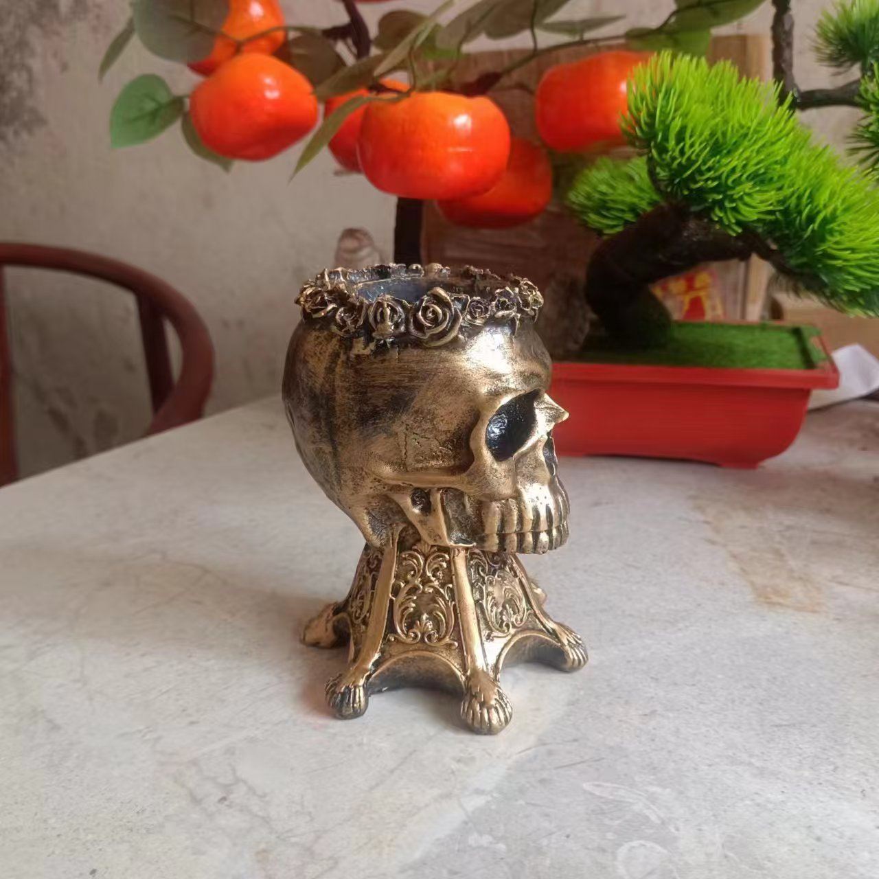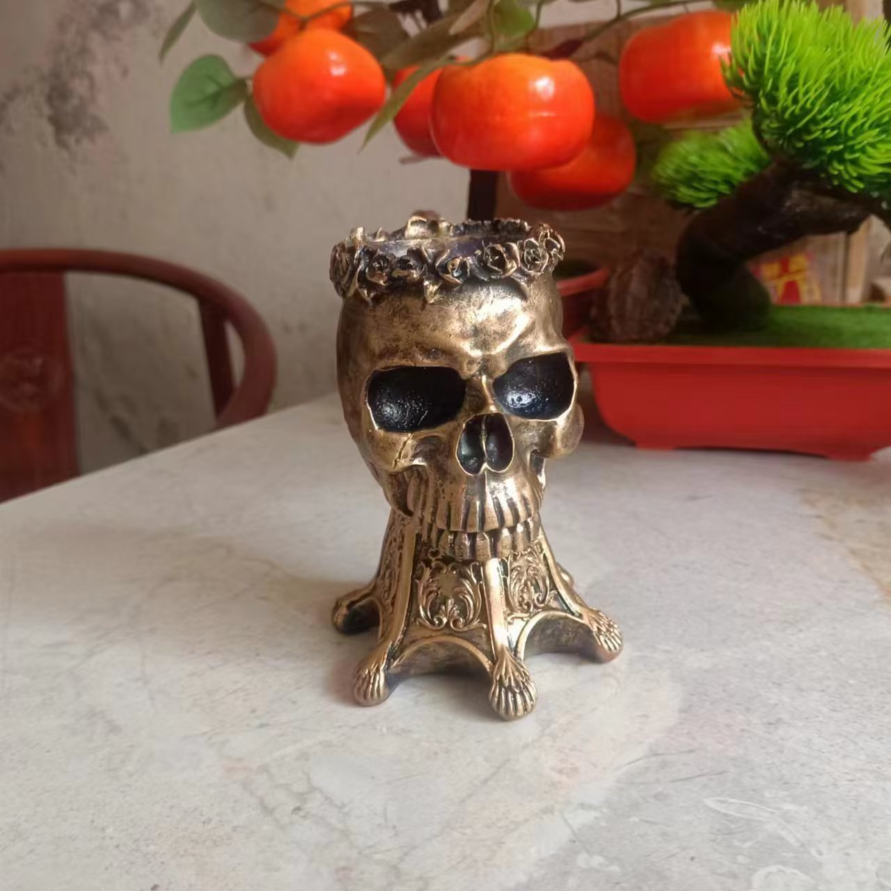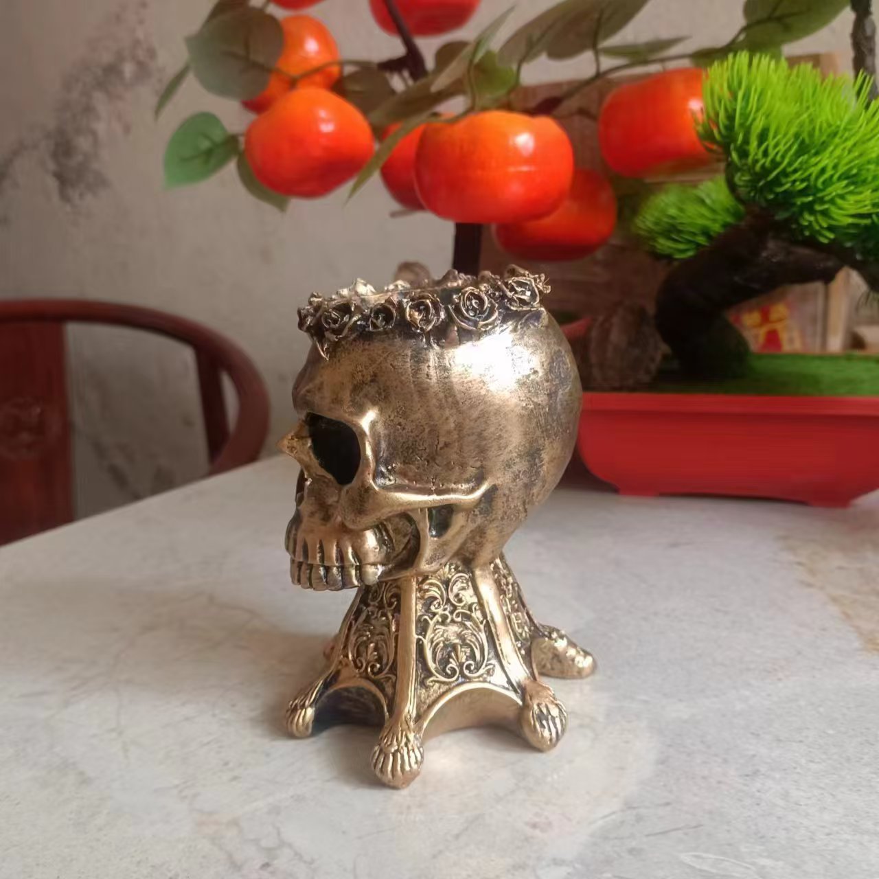 • 황동 해골 화분