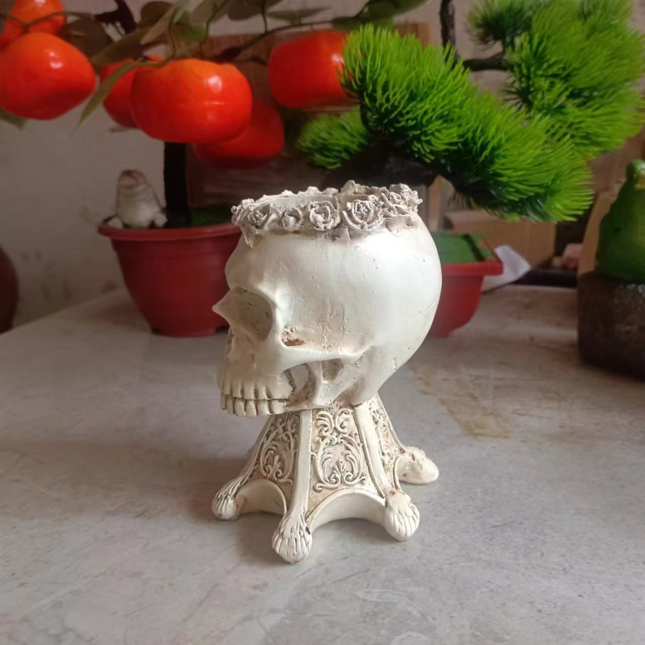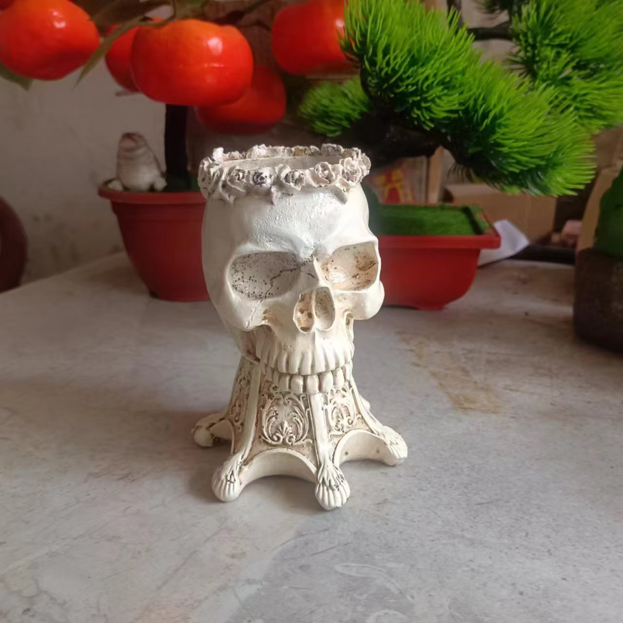 해외 인기 할로윈 해골 레진 홈데코 장식품 조각 화분 휴일스토어 가기