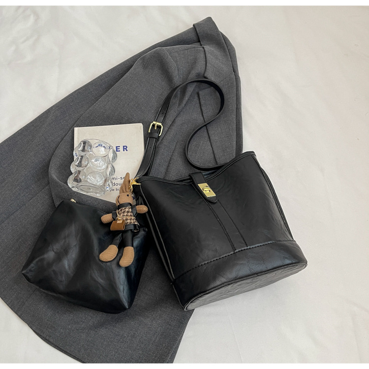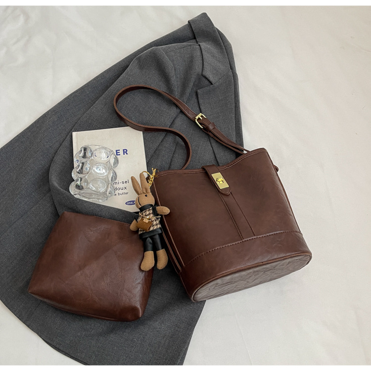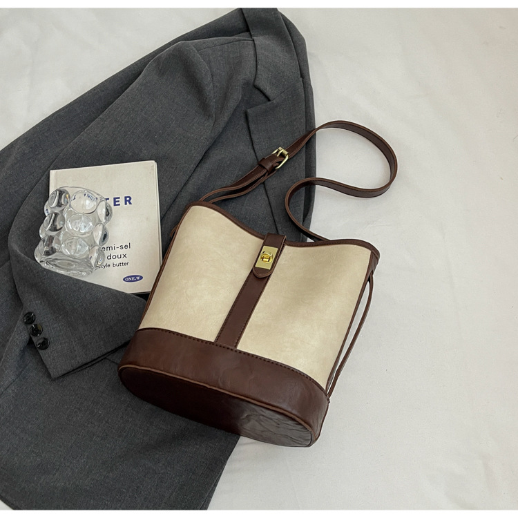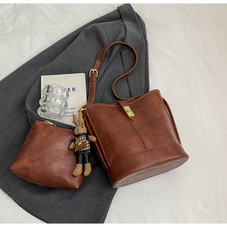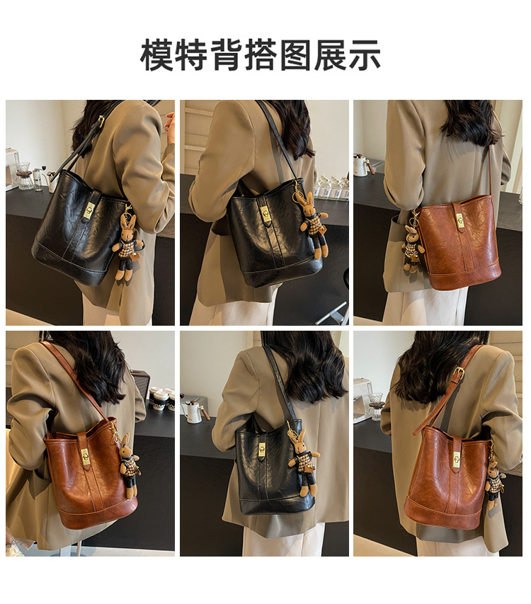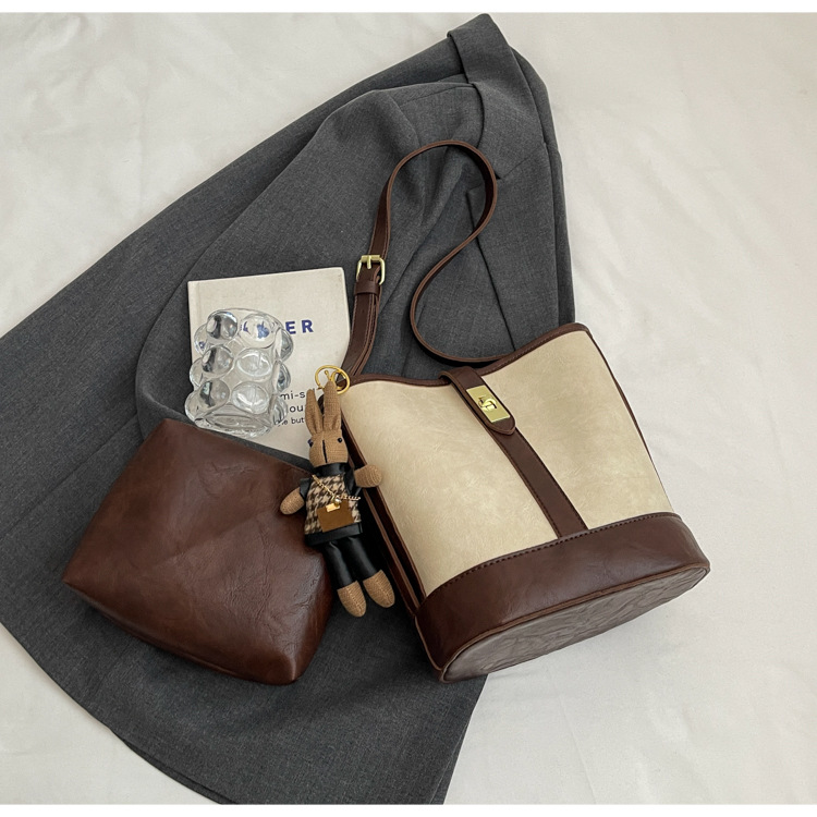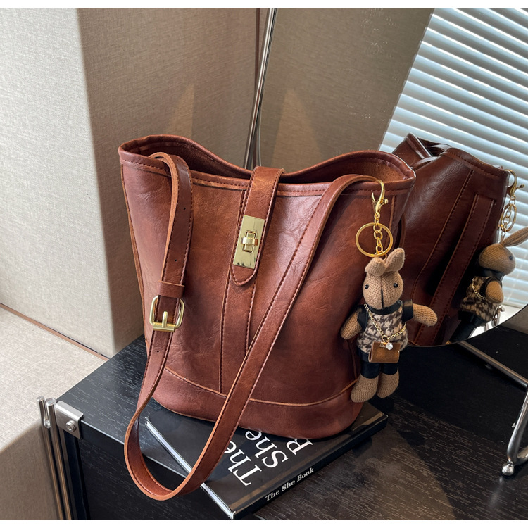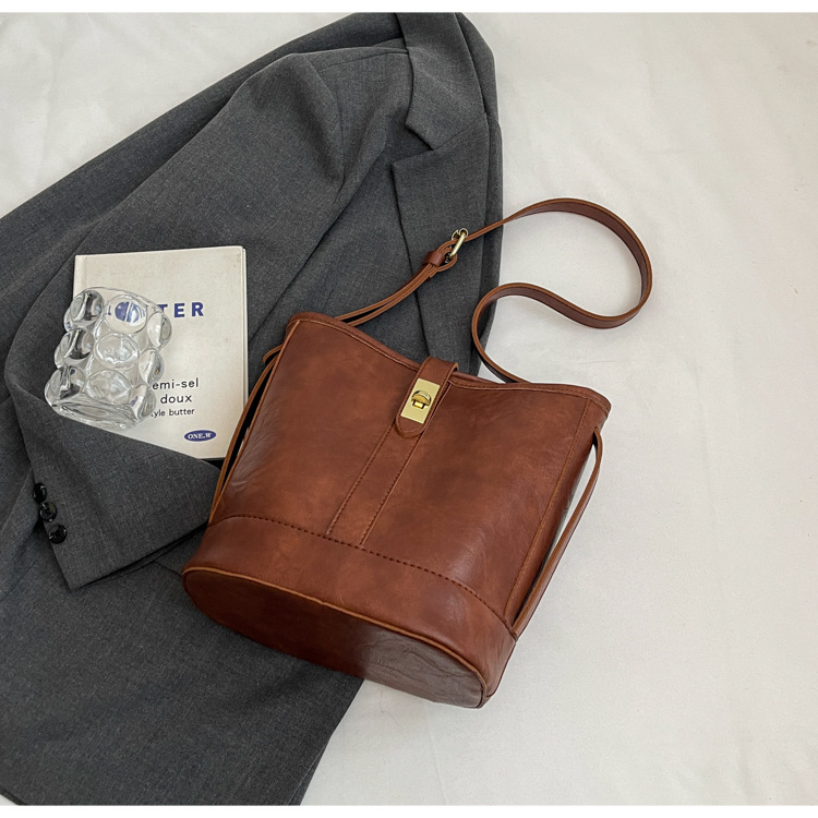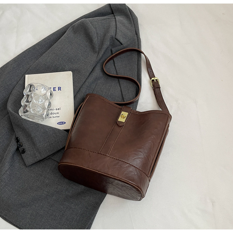레트로 트렌디 한 언더암 가방 여성의 2024 새로운 패션 통근 버킷 가방 틈새 고급 질감 어깨 크로스 바디 백
